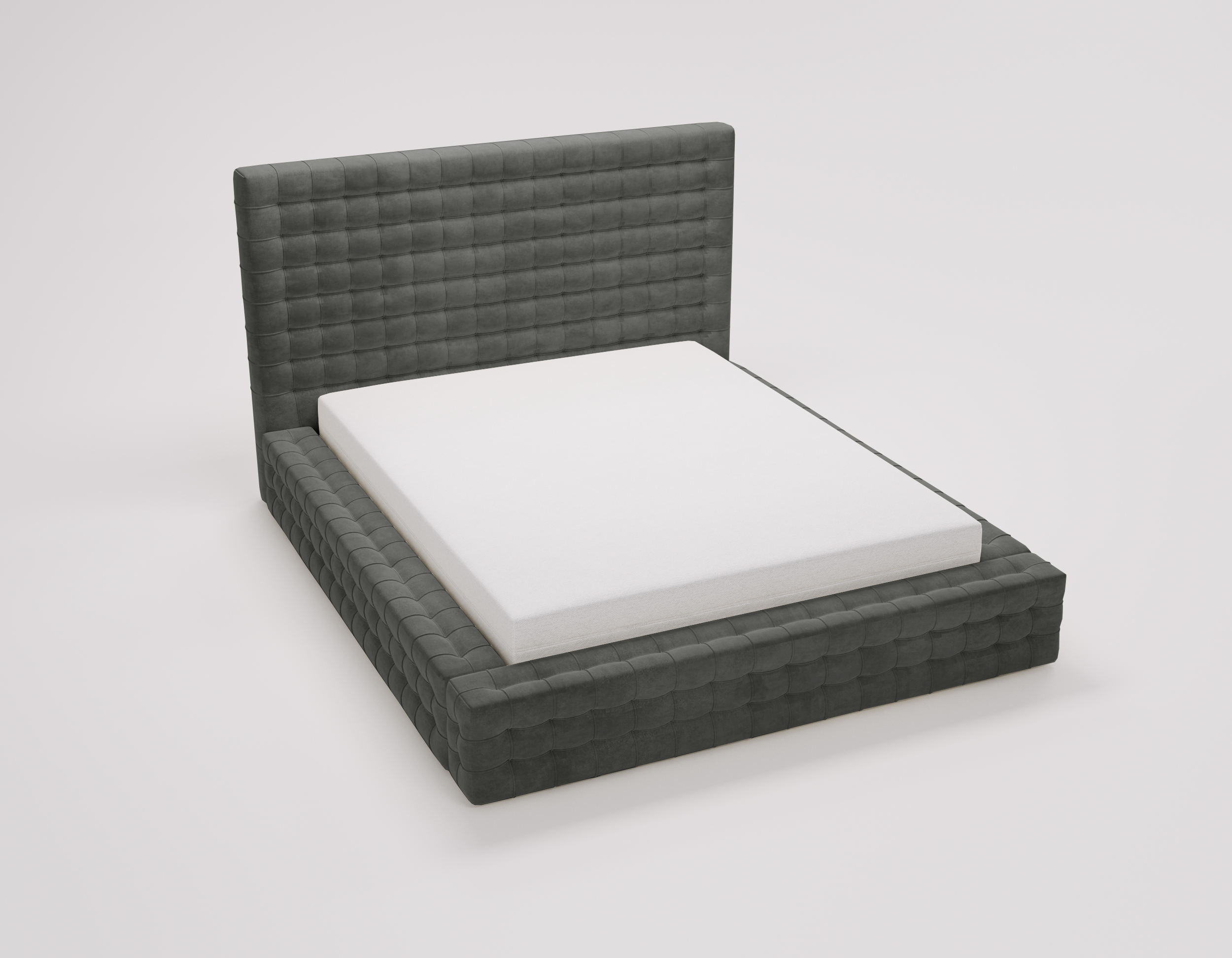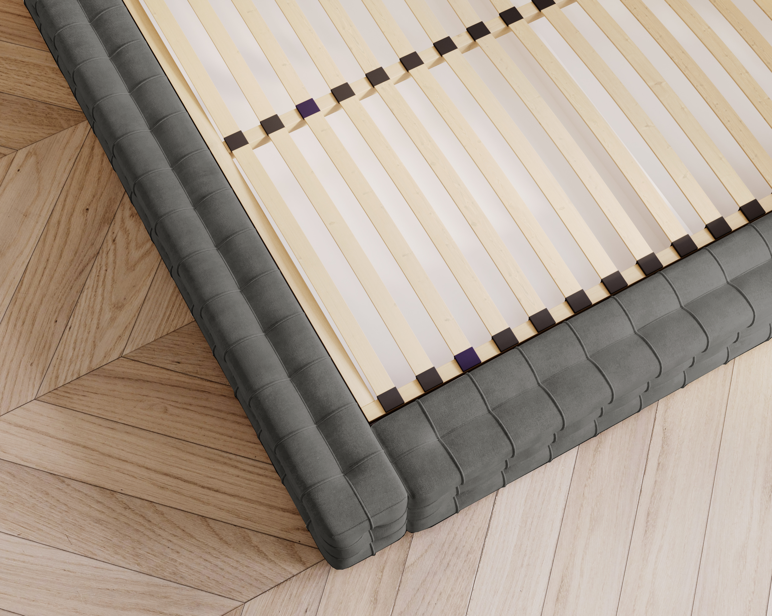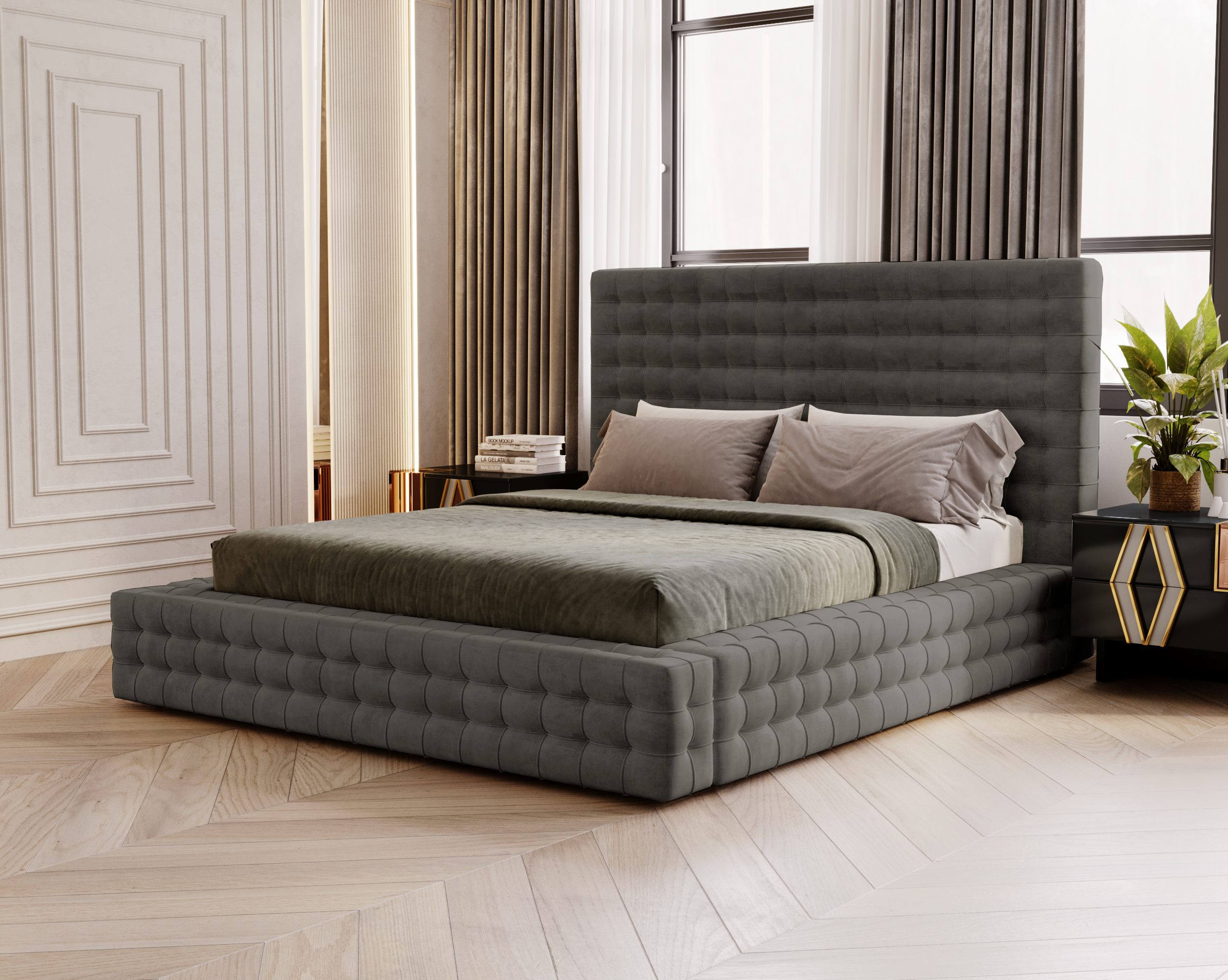 Wysokie, efektownie pikowane wezgłowie zapewnia komfortowy punkt oparcia, idealny do czytania lub wieczornego relaksu. Jego masywna, a zarazem lekka wizualnie konstrukcja sprawia, że łóżko staje się centralnym elementem każdej aranżacji – doskonale komponuje się zarówno z nowoczesnymi, jak i klasycznymi wnętrzami.