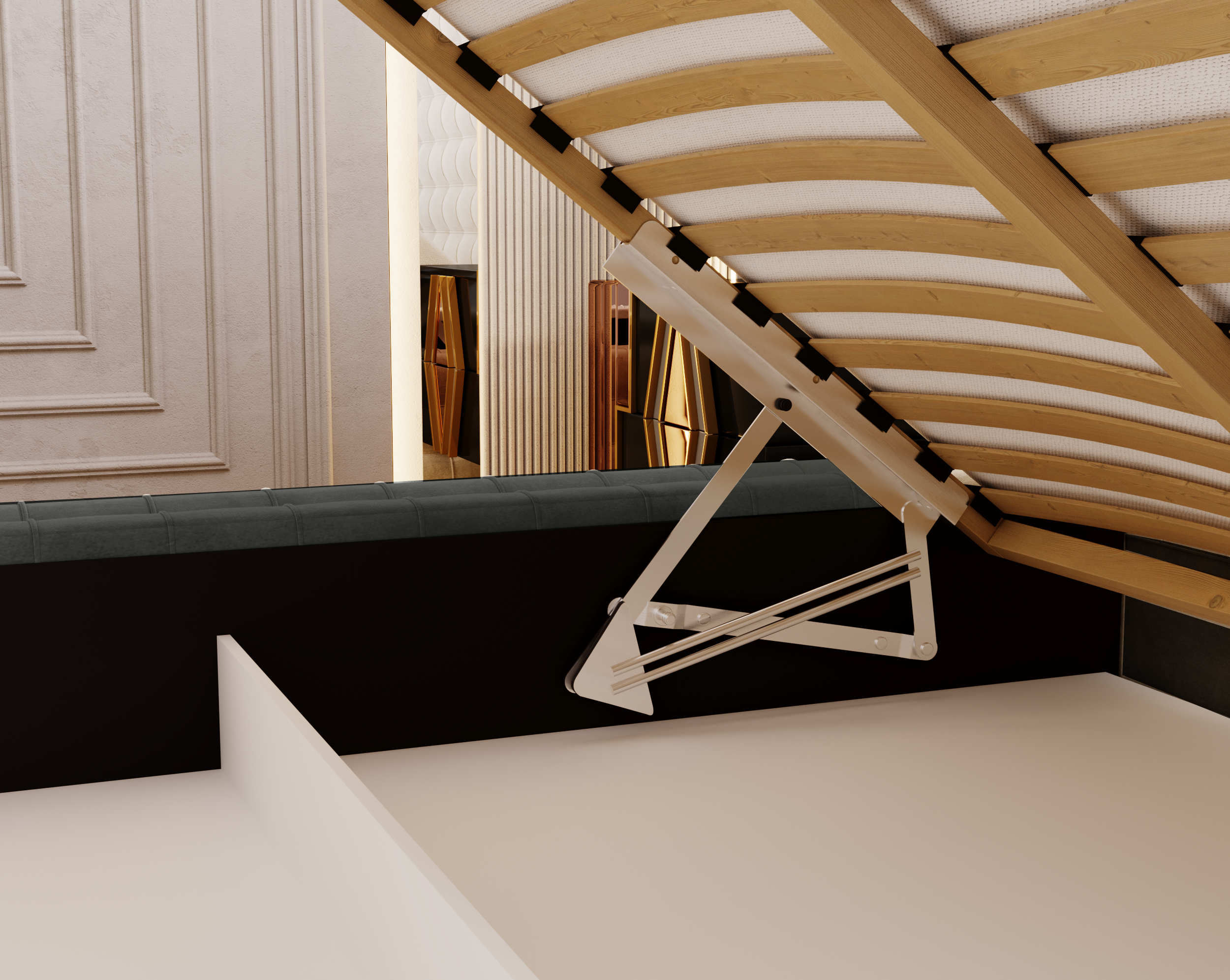 Model Sleeping Queen został wyposażony w praktyczny pojemnik na pościel, otwierany z pomocą solidnych podnośników. Wewnątrz znajduje się obszerna skrzynia, idealna do przechowywania kołder, poduszek i innych tekstyliów.