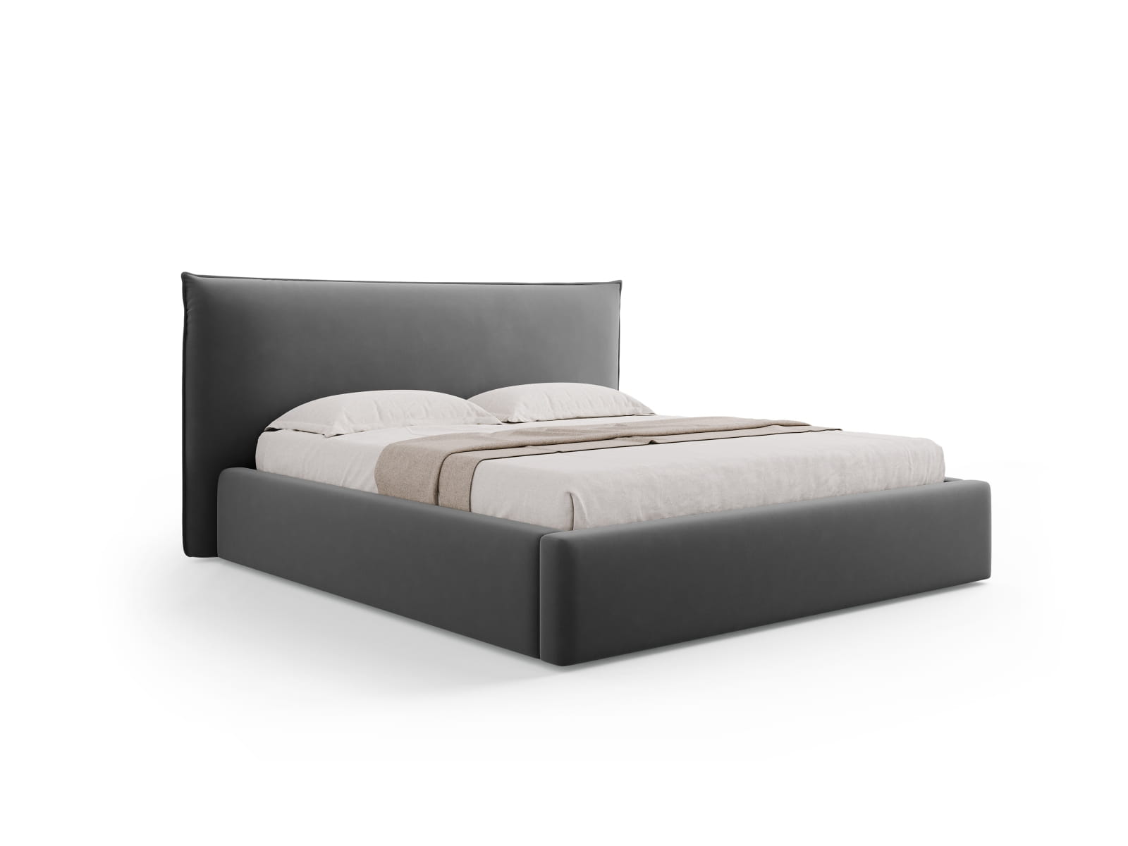Łóżko ze schowkiem i zagłówkiem Kaelle velve szare