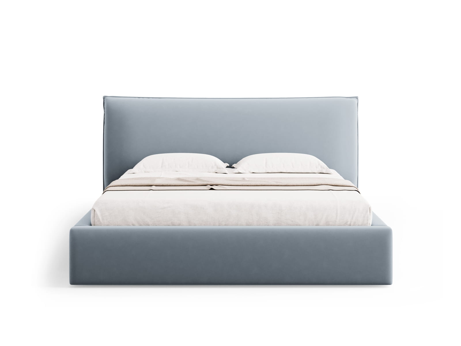 Łóżko ze schowkiem i zagłówkiem Kaelle velvet błękitne