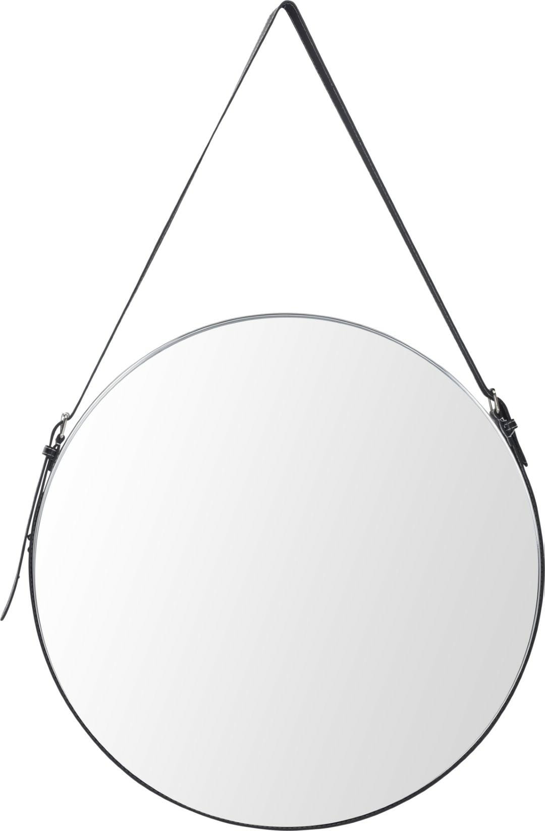 To lustro ma bardzo uniwersalny charakter, dlatego będzie pasowało do wnętrz urządzonych w różnym stylu. Okrągła tafla została umieszczona w metalowej, pomalowanej na czarno ramie. Lustro można zawiesić na znajdującym się w zestawie pasku wykonanym z ekoskóry. Posiada on dwie klamry, umożliwiające regulację wysokości. Ten prosty, bezpretensjonalny dodatek na pewno przypadnie do gustu miłośnikom minimalizmu. Wspaniale będzie się prezentował w łazience, ale też np. w salonie urządzonym w stylu skandynawskim.