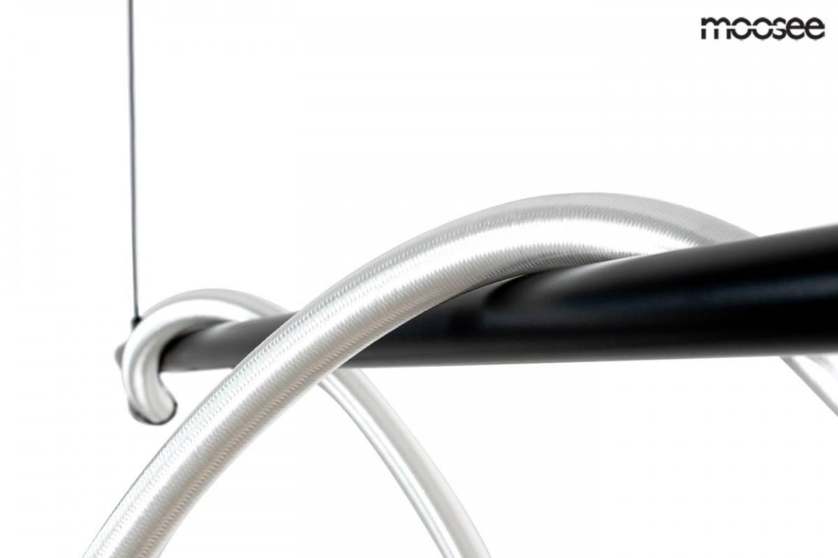 MOOSEE lampa wisząca SERPIENTE czarna.Wyjątkowe połączenie stali z tkaniną zawieszone na cienkich linkach.