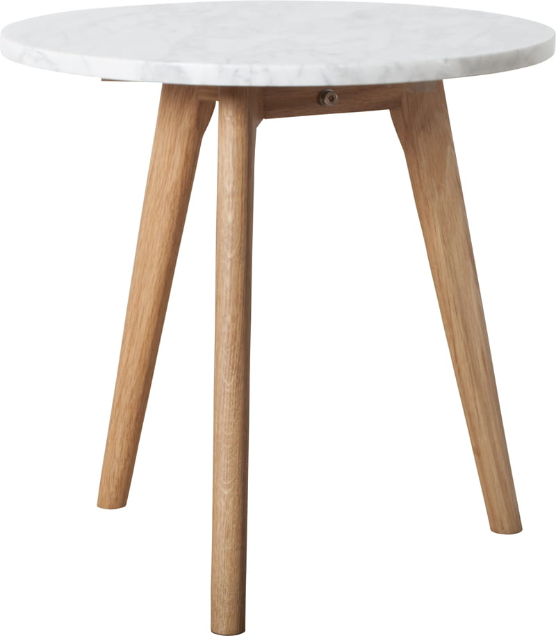 Stoliki z marmurowym blatem cieszą się ostatnio sporym powodzeniem, ale niektórych osób nie przekonuje tak popularne łączenie ich z metalowym stelażem. Ten model to propozycja dla tych, którzy cenią bardziej naturalne, przytulne dodatki. Tu blat z pięknego białego marmuru spoczywa na drewnianych dębowych nogach. Można go postawić obok ulubionego fotela do czytania, przy sofie w salonie, przy łóżku w sypialni i wielu jeszcze innych miejscach. Wspaniale dopełni wystrój wnętrz skandynawskich i minimalistycznych. Dostępny jest w kilku rozmiarach.