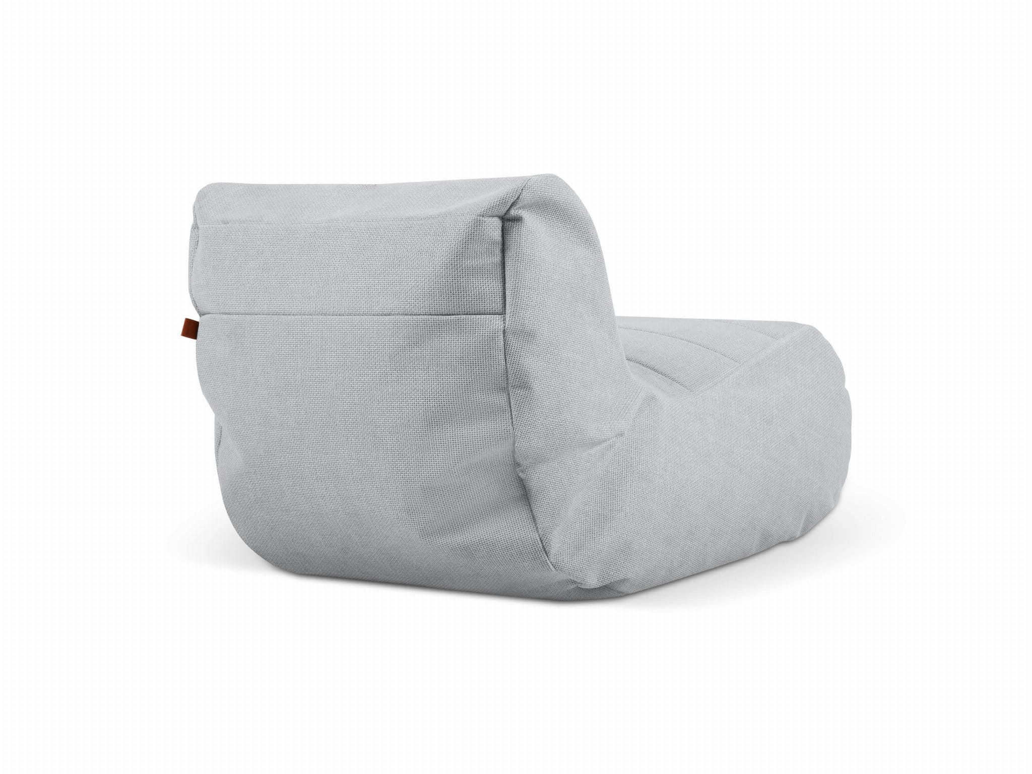 Jasno szary fotel ogrodowy Oheo oferuje doskonałe wsparcie dla ciała, a także wygodę bezpośredniego położenia na ziemi. Pokryty wytrzymałą, strukturalną tkaniną Bjorn (test Martindale'a 50000, 100% poliester, 3600 g/m²). Wypełniony styropianowymi granulkami, dostosowuje się do ułożenia sylwetki, zapewniając wyjątkową elastyczność.