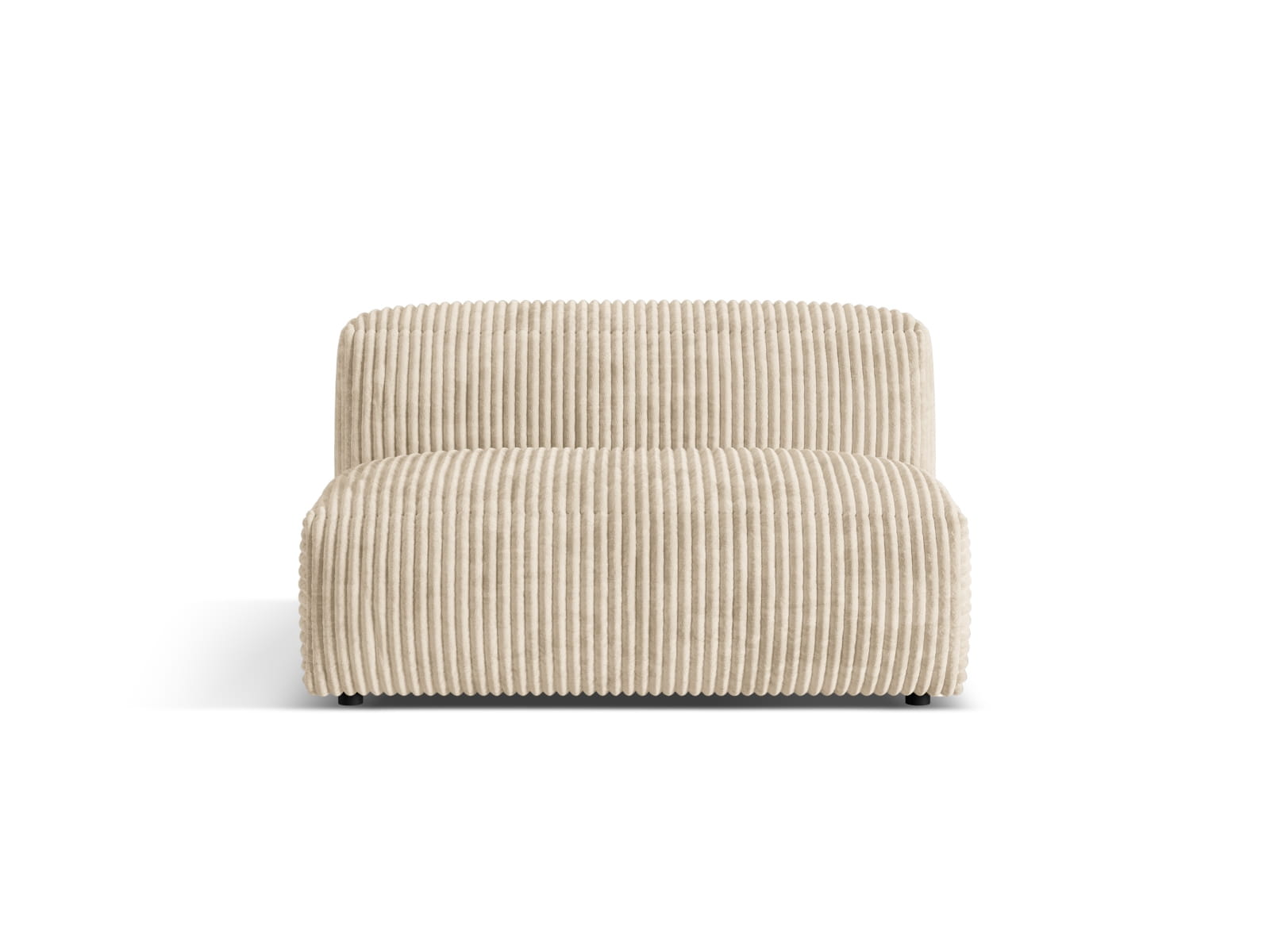 Moduł został zaprojektowany z myślą o maksymalnym komforcie użytkowania. Obszerne, głębokie siedzisko wypełnione jest grubą warstwą sprężystej pianki i wspierane sprężynami falistymi, co zapewnia doskonałą elastyczność i wygodę. Brak podłokietników oraz otwarta forma pozwalają na łatwe zestawienie go z innymi modułami, umożliwiając dowolną konfigurację – od klasycznej sofy po przestronny narożnik czy panoramiczny układ salonowy.