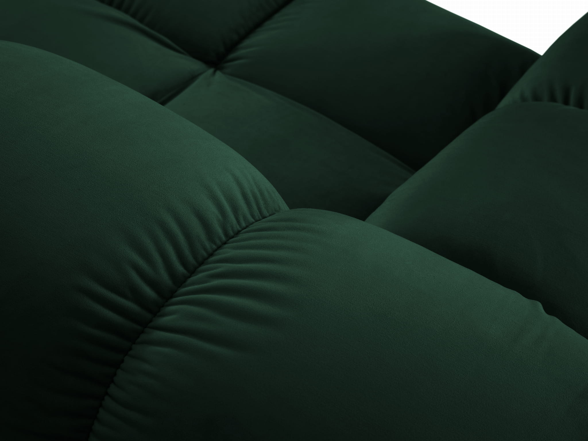 Moduł sofy Bellis jest tapicerowany tkaniną - Riviera 38. Jest to gęsta tkanina meblowa typu welwet, niezwykle miękka, aksamitna w dotyku. Charakteryzuje się wysoką odpornością na ścieranie i tarcie. Należy do materiałów odpornych na działanie światła, dzięki czemu nie płowieje. Nie ulega również mechaceniu dzięki swojej wyjątkowej odporności. Jest również pozbawiona alergenów, co oznacza, że jest bezpieczna dla życia i zdrowia człowieka. Dodatkowo posiada bardzo dobrą odporność na ścieranie - Test Martindale'a 100 000, 300 g/m². Pomyślnie przeszła test papierosowy, co oznacza, że jest odporna na zapłon płomienia.