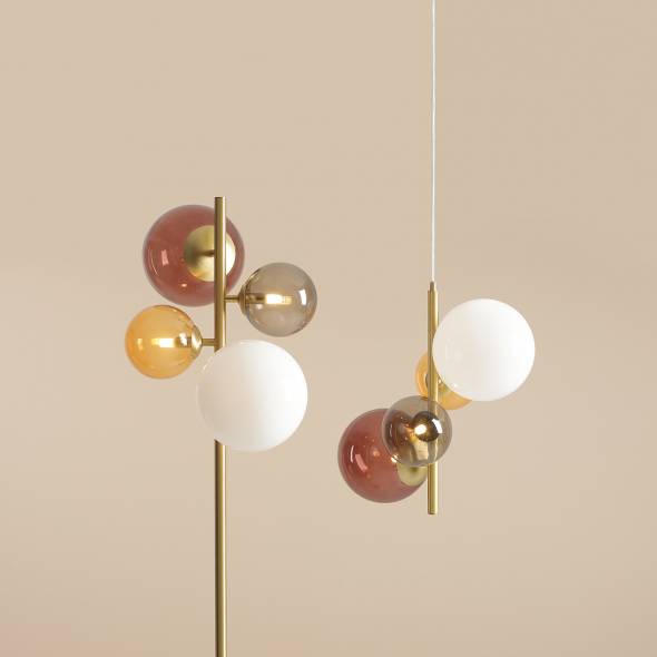 Oryginalna lampa podłogowa Bloom z różnokolorowymi kloszami kulami - ożywi wnętrze, a jej ciepłe barwy dodadzą przytulności.