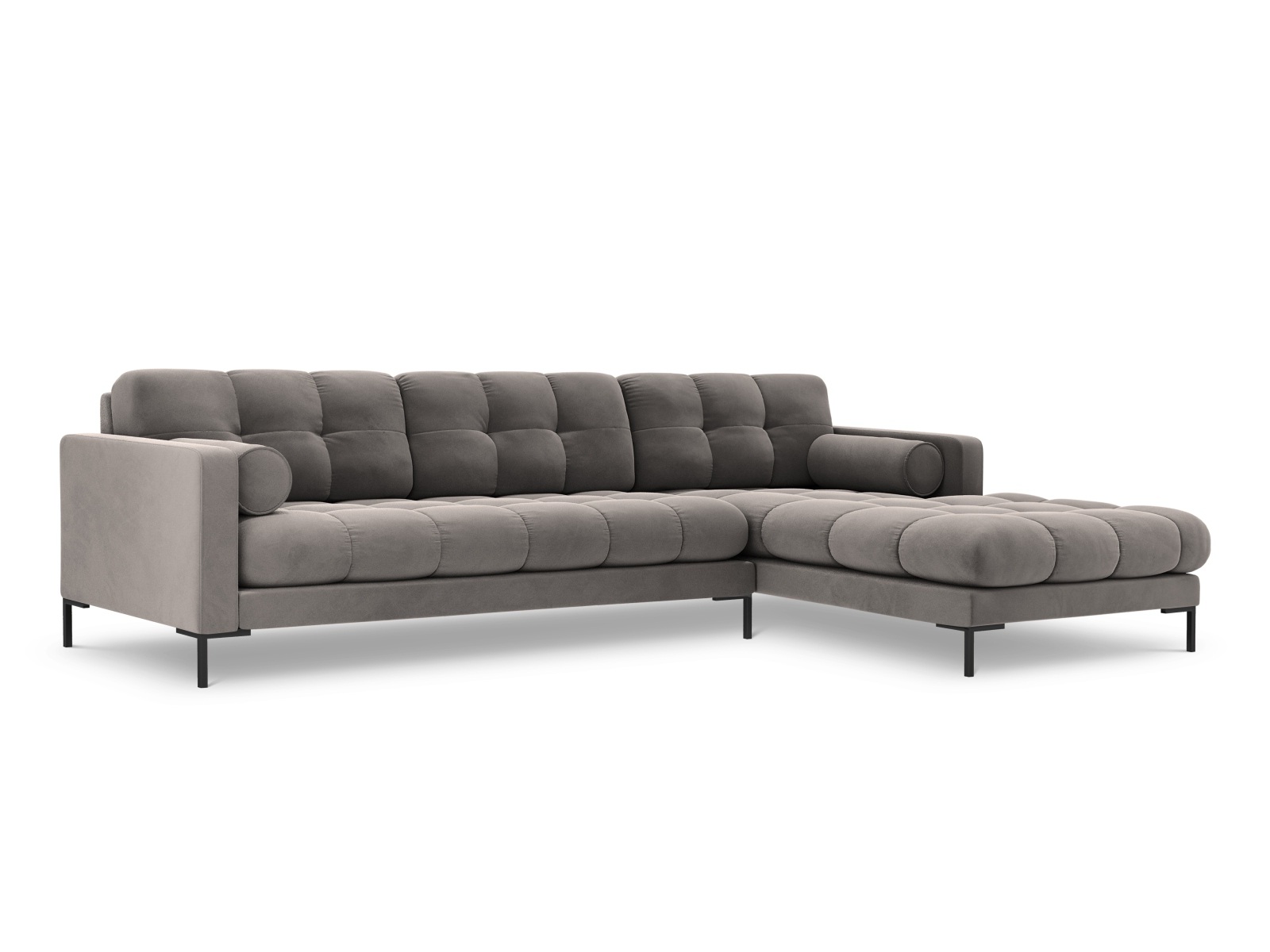Narożna sofa pikowana Bali aksamit szara na czarnych nóżkach
