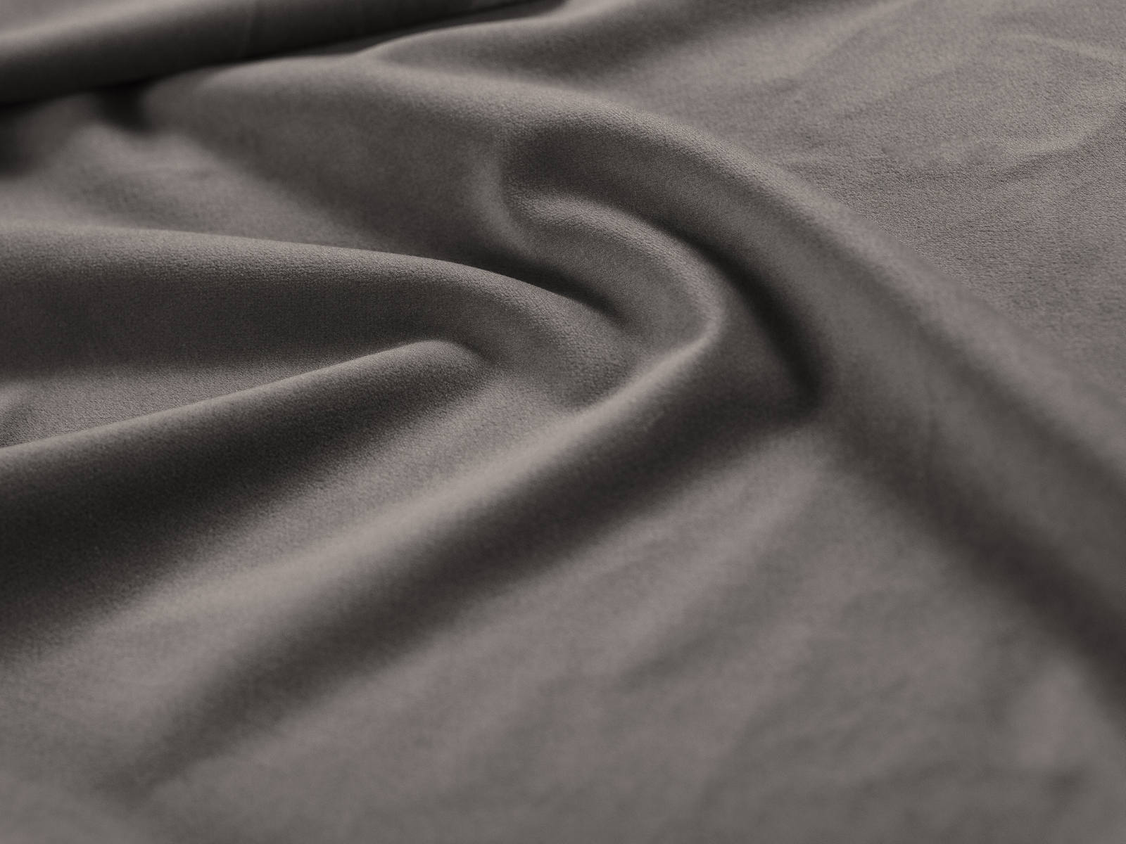 Sofa ma aż cztery siedziska i jest tapicerowana piękną tkaniną welurową Bluvel 13 z lekkim połyskiem i krótkim włosiem. Ta wysokiej jakości tkanina jest odporna na ścieranie (test Martindale: 50 000 cykli) oraz posiada Certyfikat Oeko-Tex. Jest to tkanina pozbawiona alergenów, bezpieczna dla życia i zdrowia człowieka.