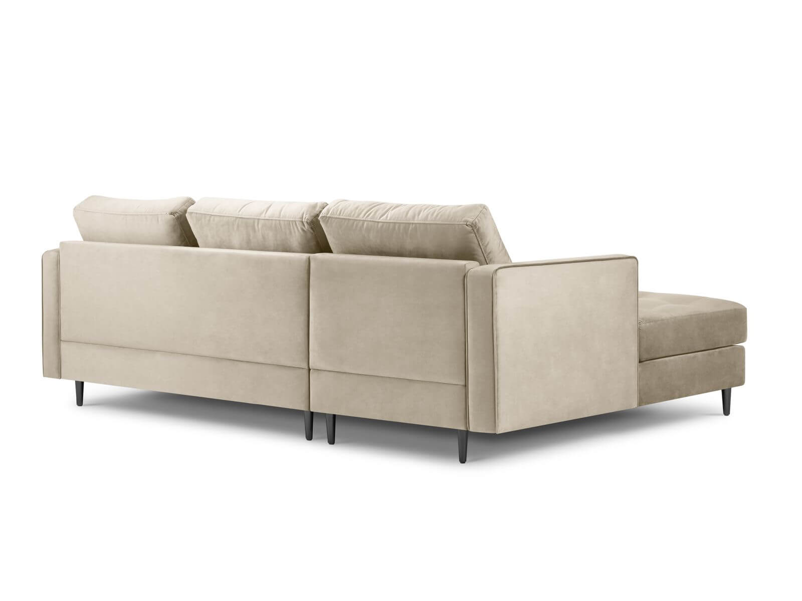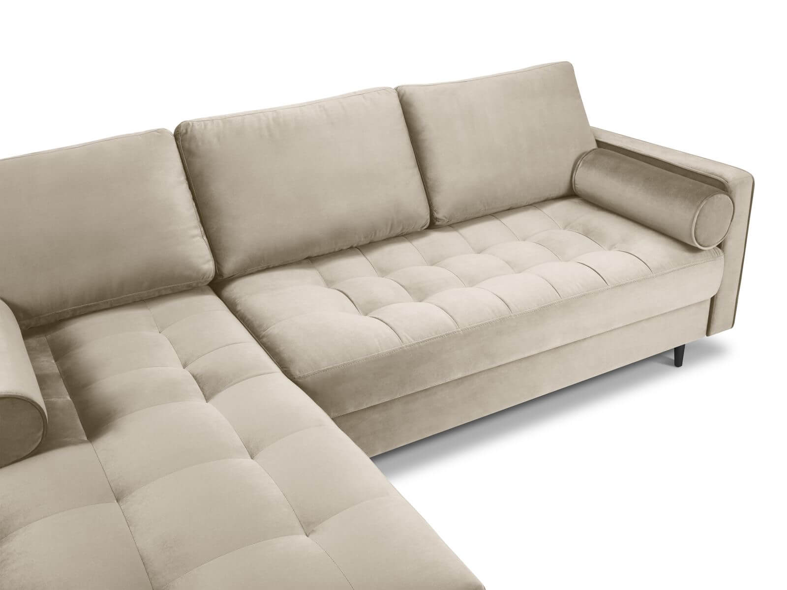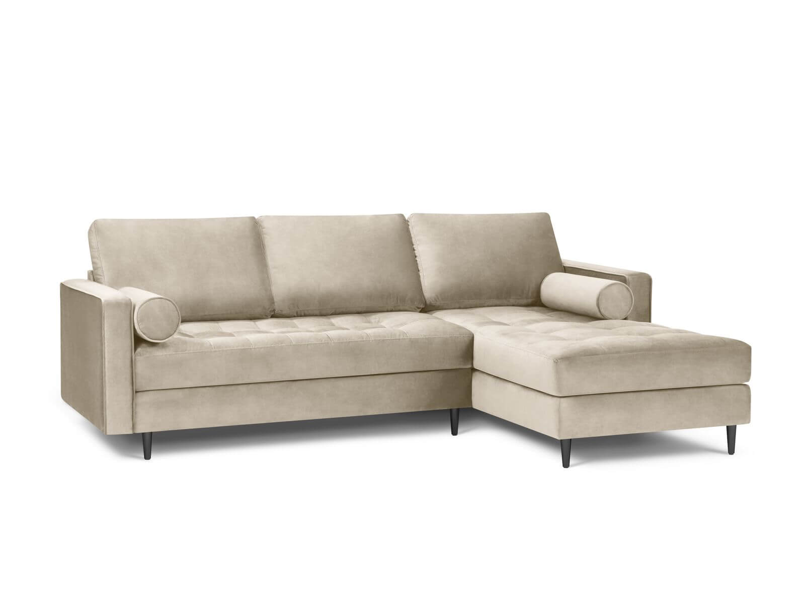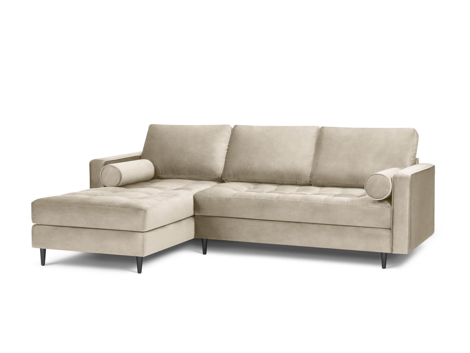 Narożna sofa pikowana Santo aksamit beżowa na czarnych nóżkach