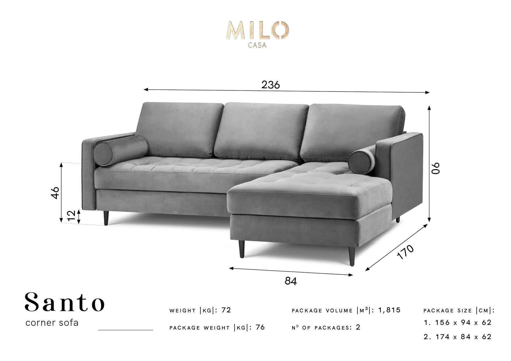 Kolor pikowanego narożnika Santo to beżowy - Salvador 2 (tkanina) oraz czarny (nóżki). Mebel oferujemy także na złotych nóżkach oraz w innych kolorach.