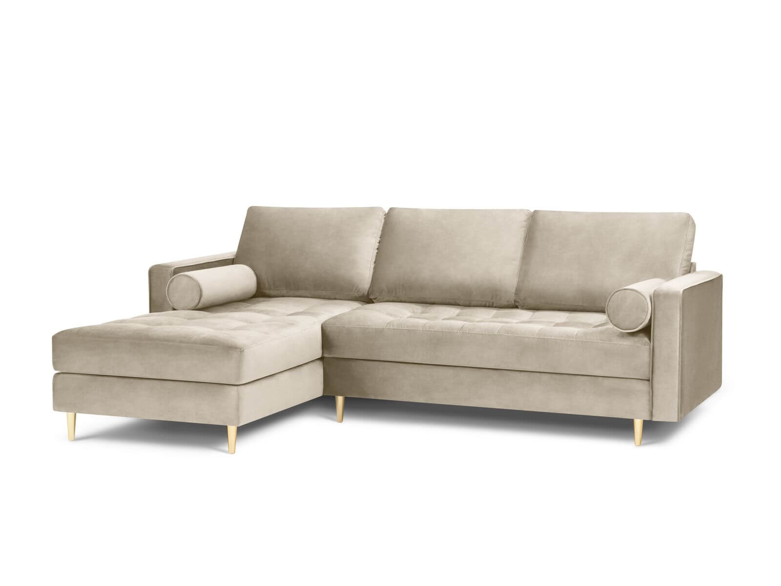 Narożna sofa pikowana Santo aksamit beżowa na złotych nóżkach