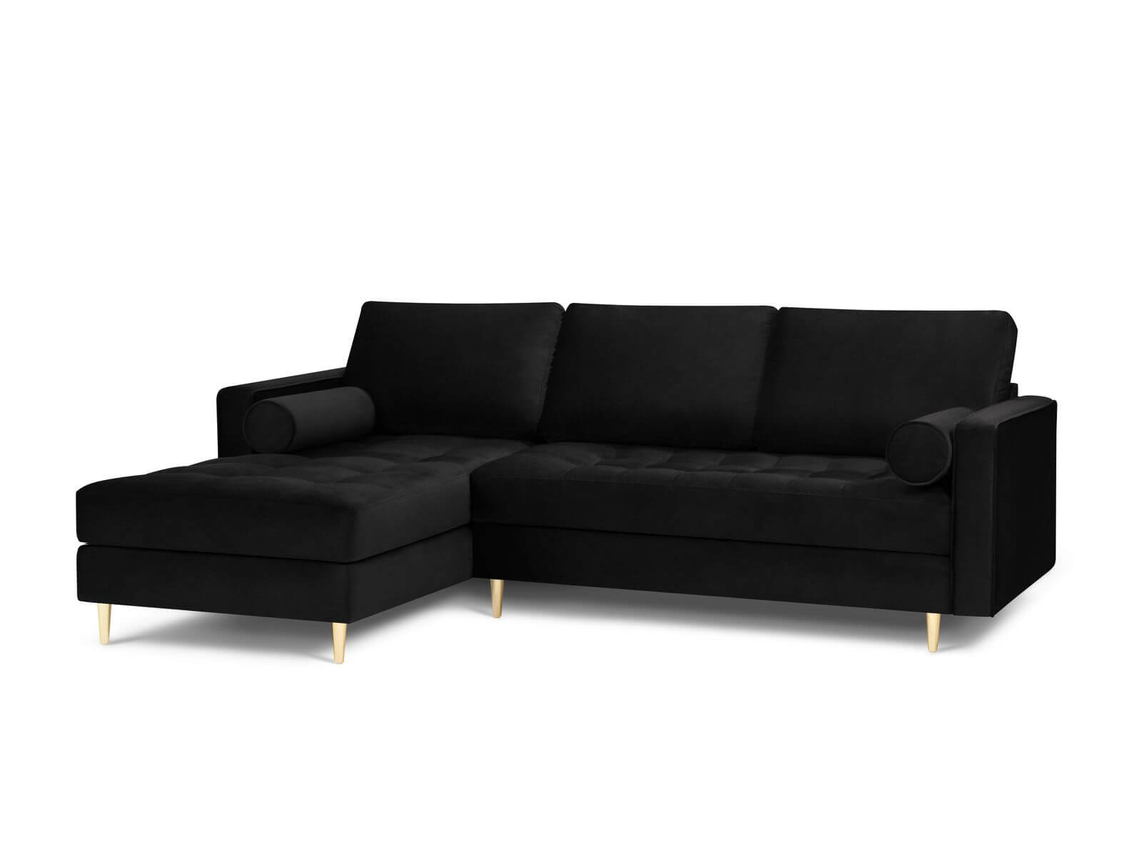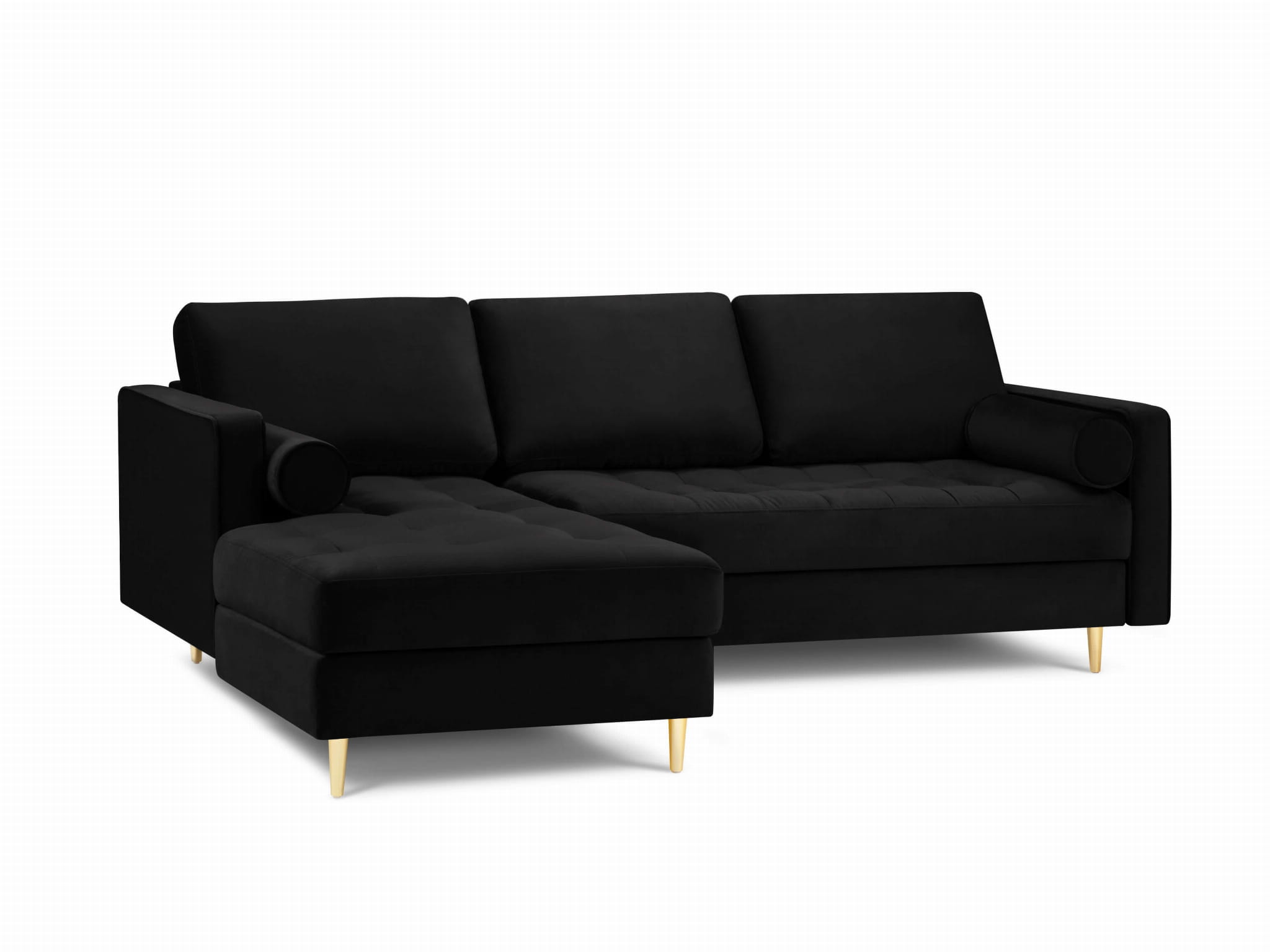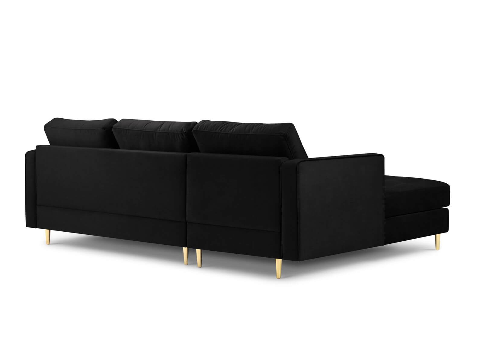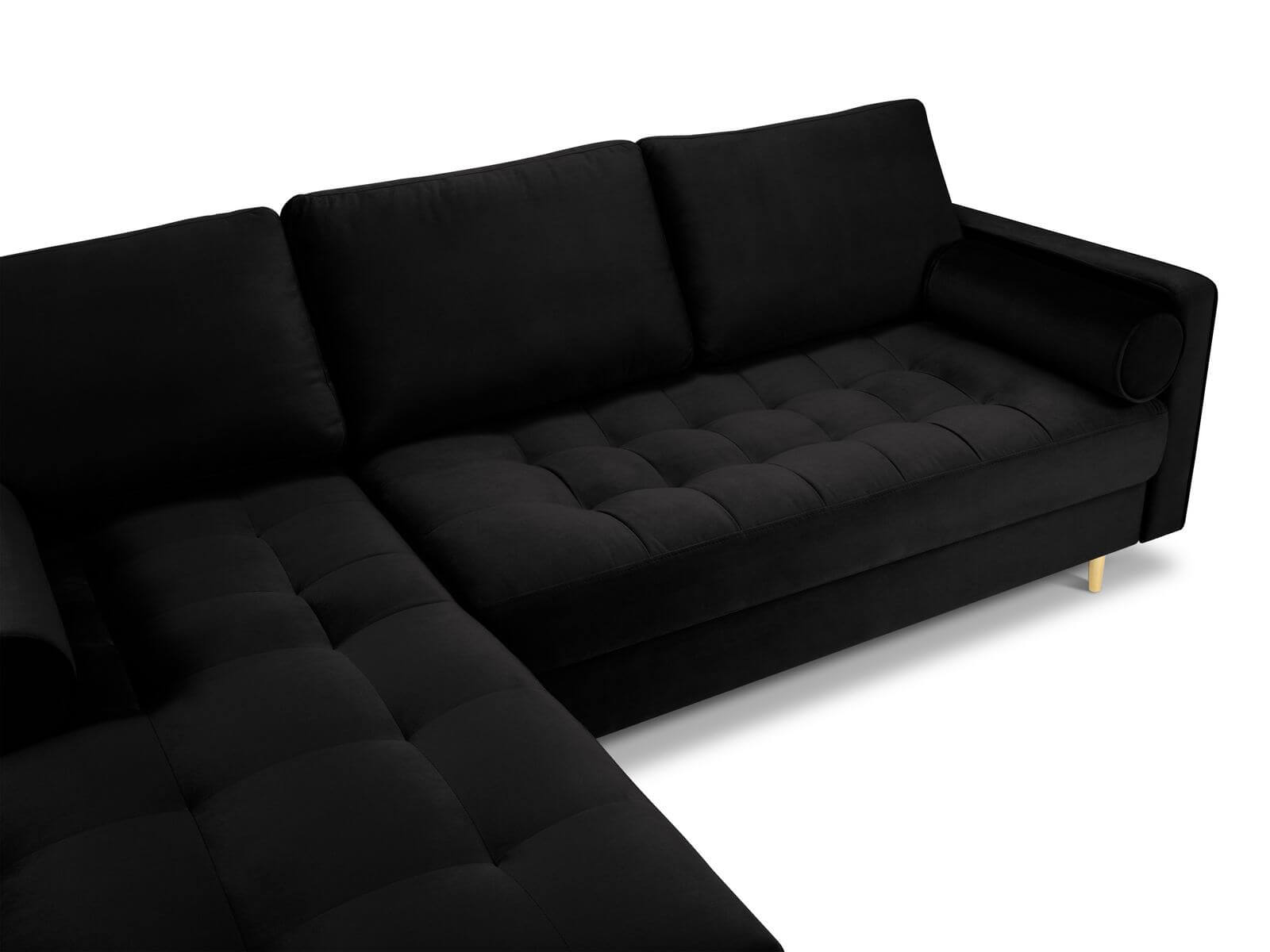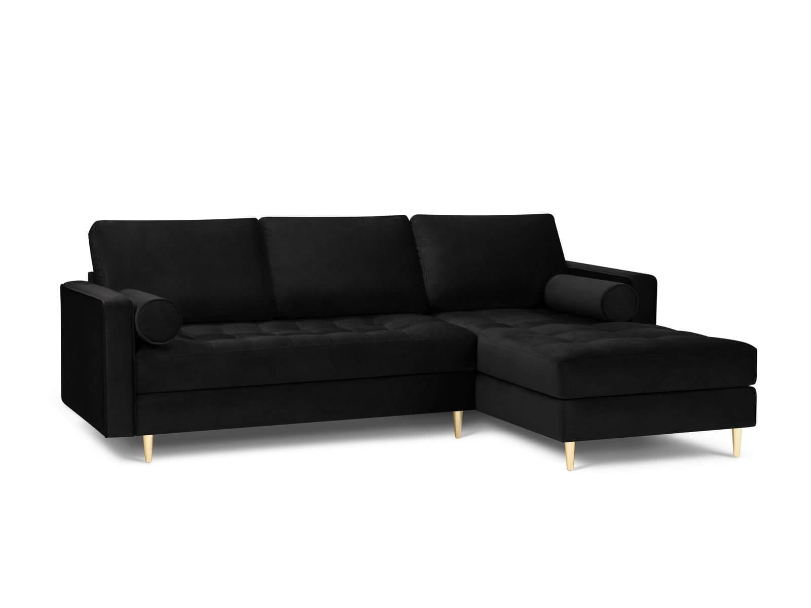 Narożna sofa pikowana Santo aksamit czarna na złotych nóżkach