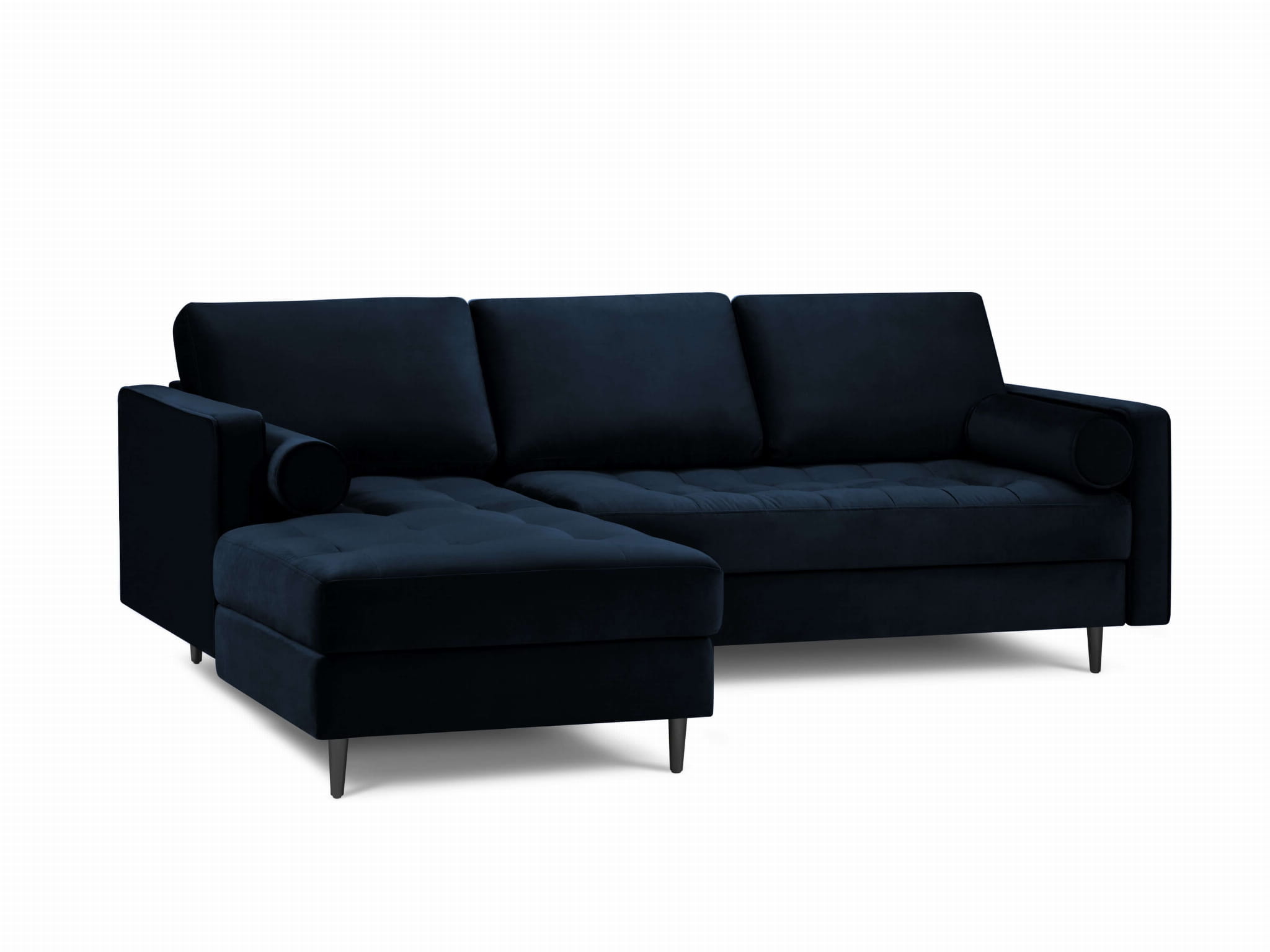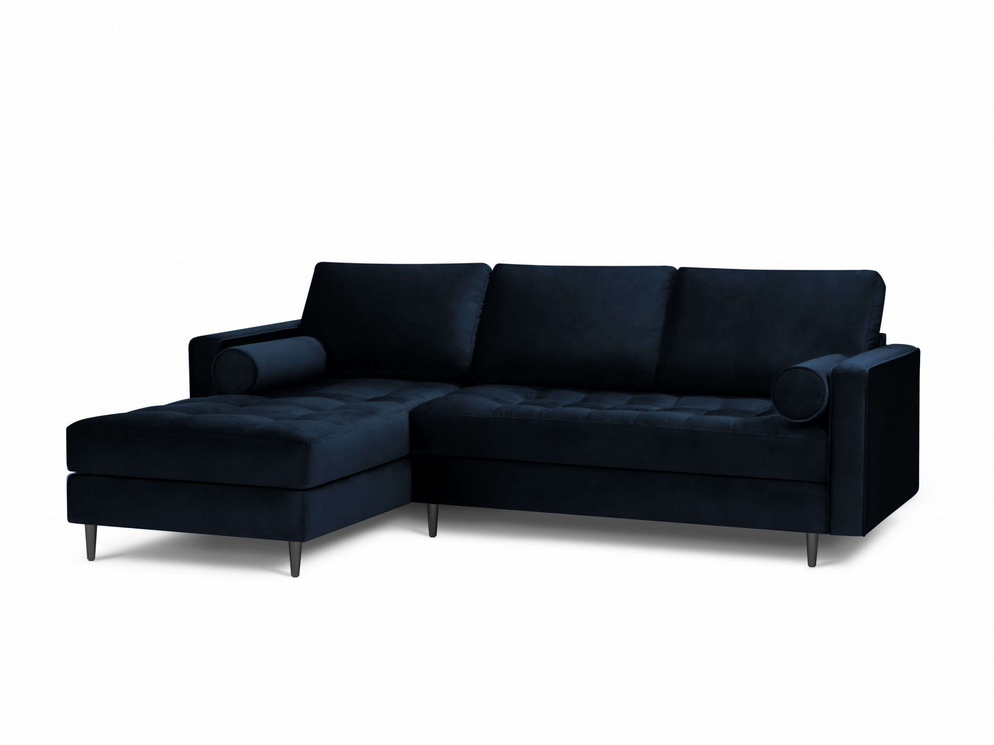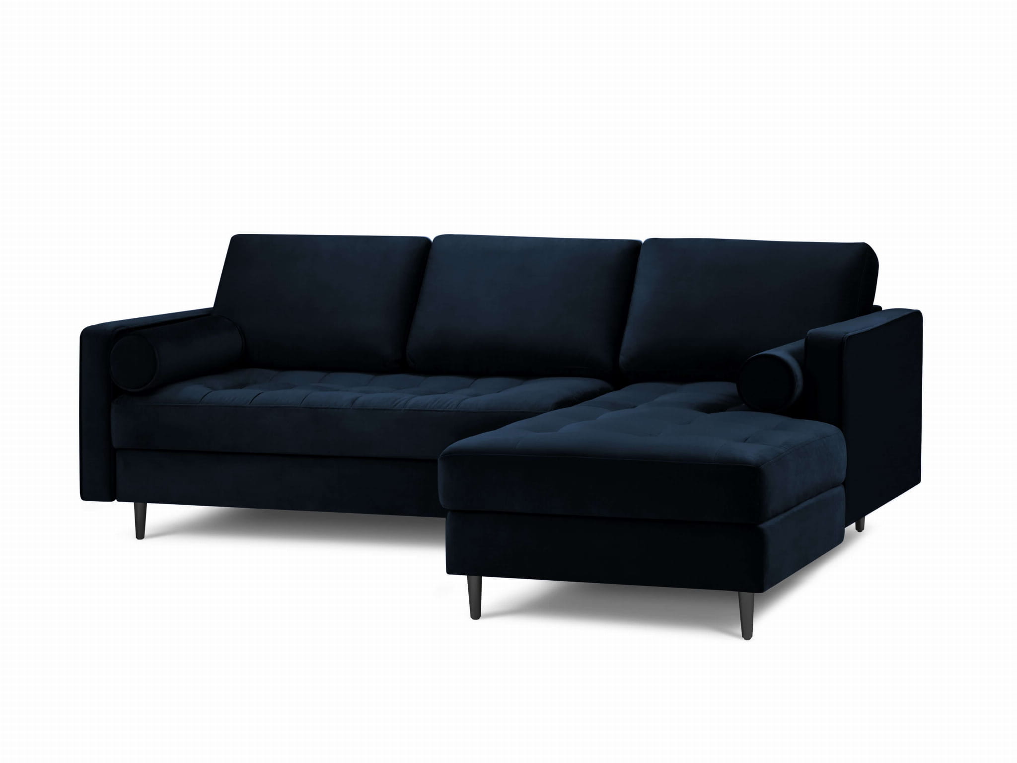 Narożna sofa pikowana Santo aksamit granatowa na czarnych nogach