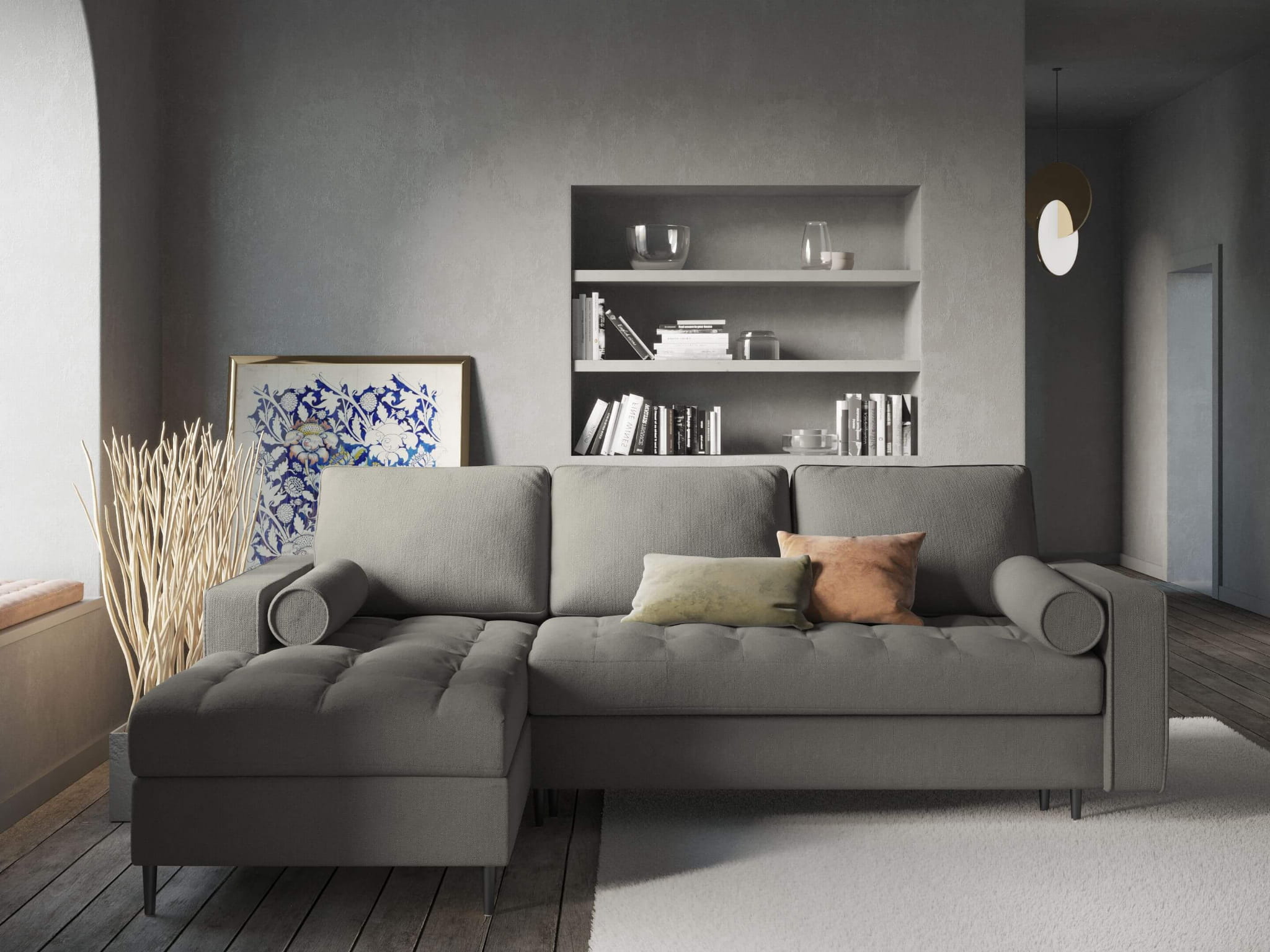 Ponadczasowe pikowanie oraz nóżki w czarnym kolorze nadają narożnej sofie eleganckiego wyglądu, który z powodzeniem urozmaici wnętrza w stylu nowoczesnym. Rozkładany, ciemno szary narożnik świetnie zaprezentuje się w domowym salonie, tworząc małe centrum wypoczynkowe. Domownicy i goście z pewnością będą zachwyceni.
