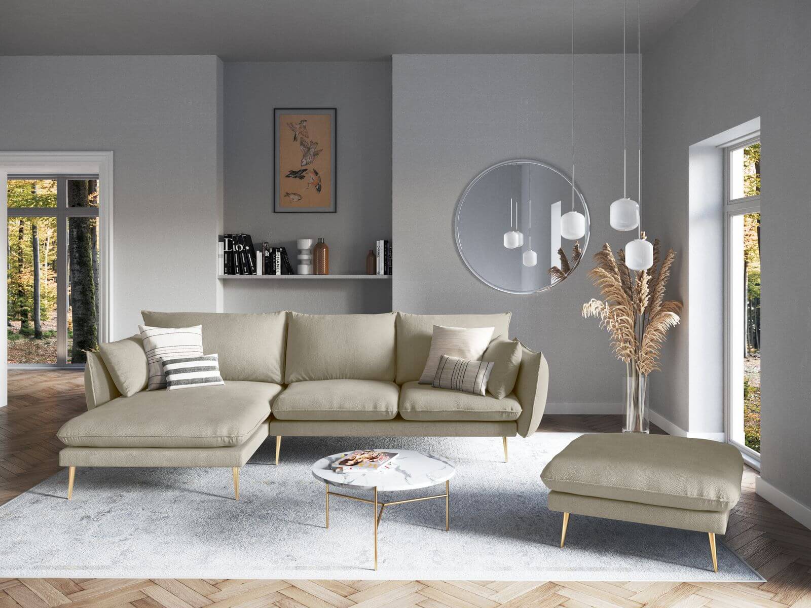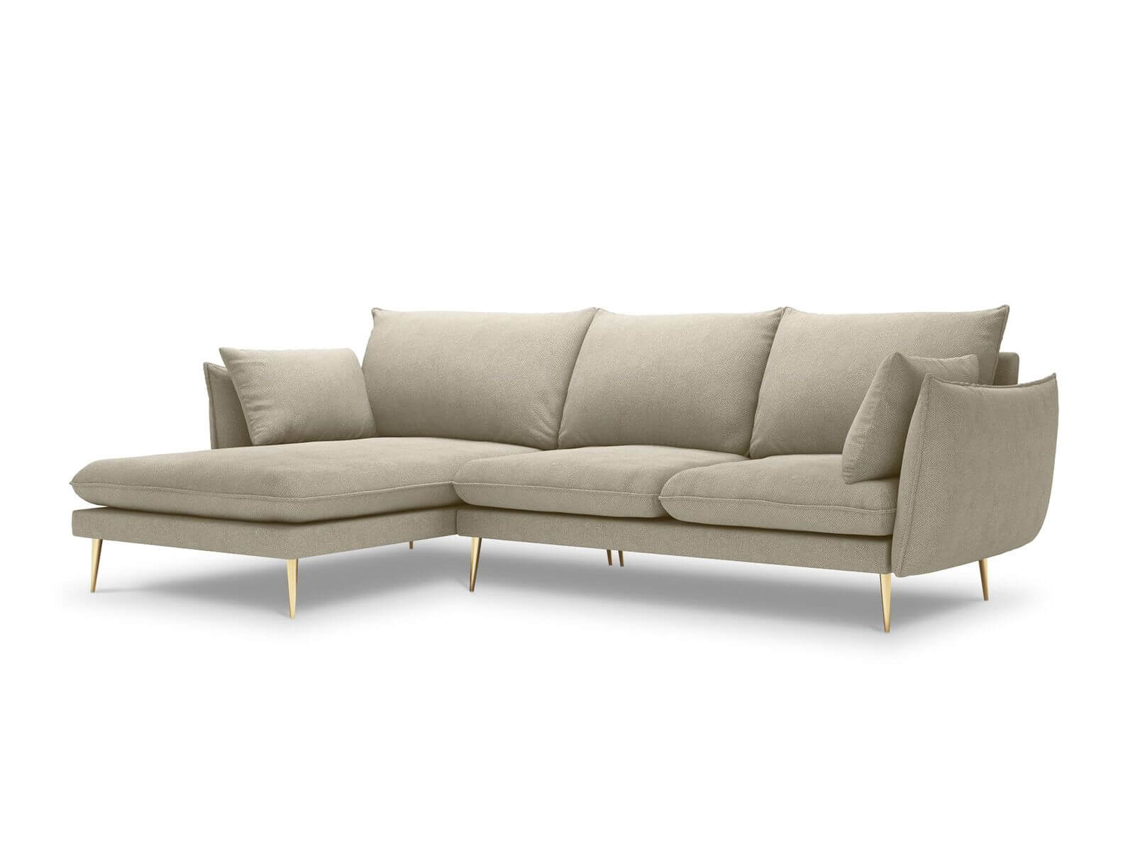 Narożnik Elio strukturalna tkanina ciemny beż nóżki złote