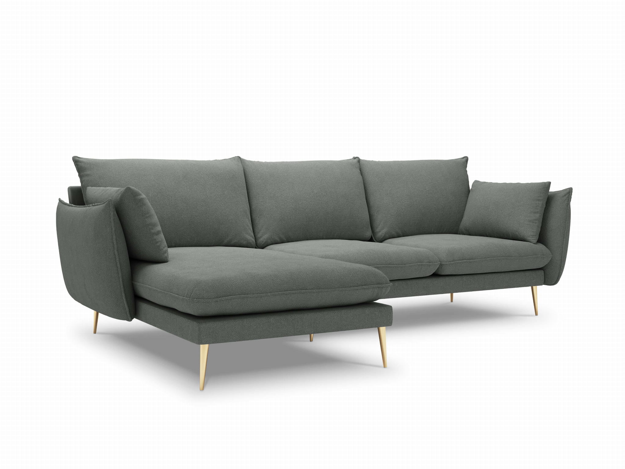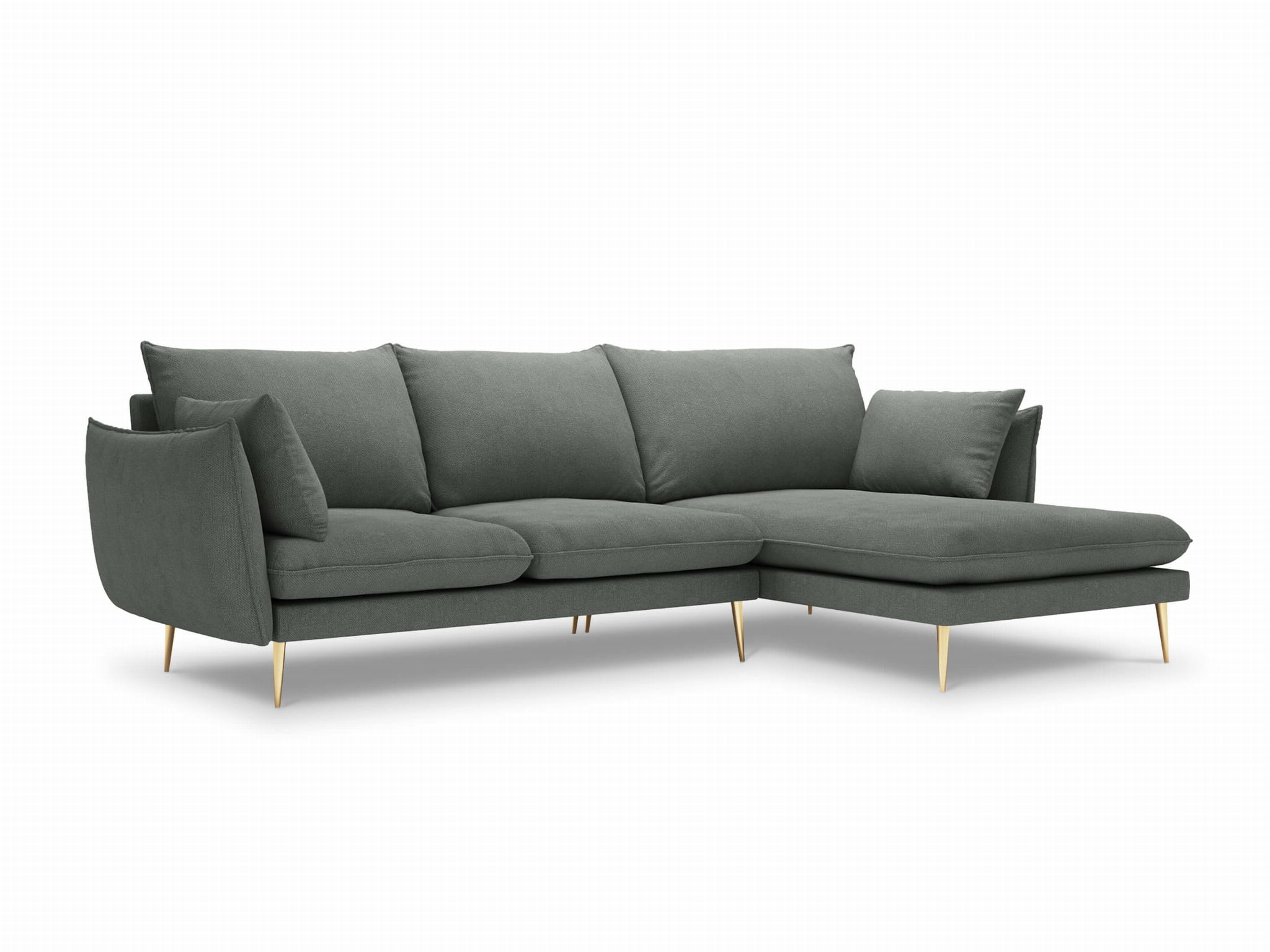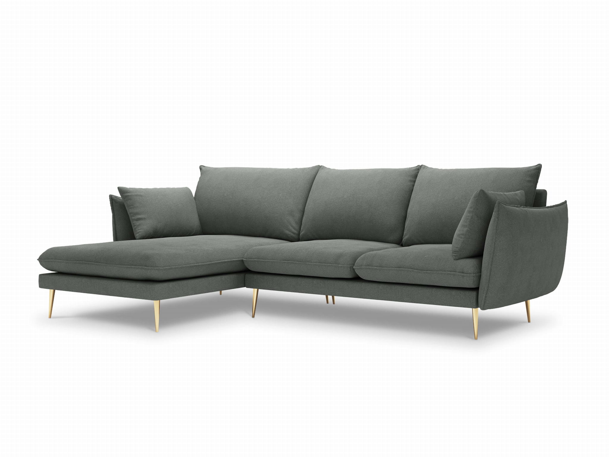 Narożnik Elio strukturalna tkanina ciemny szary nóżki złote
