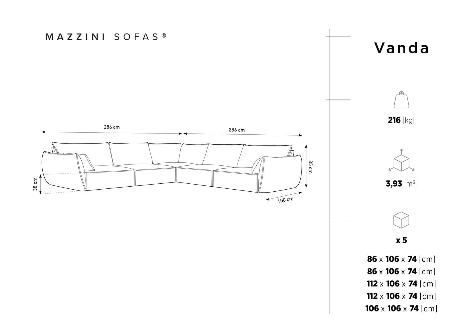 Ciemny narożnik Vanda wykończony miękkim materiałem, idealny do przytulnego salonu.