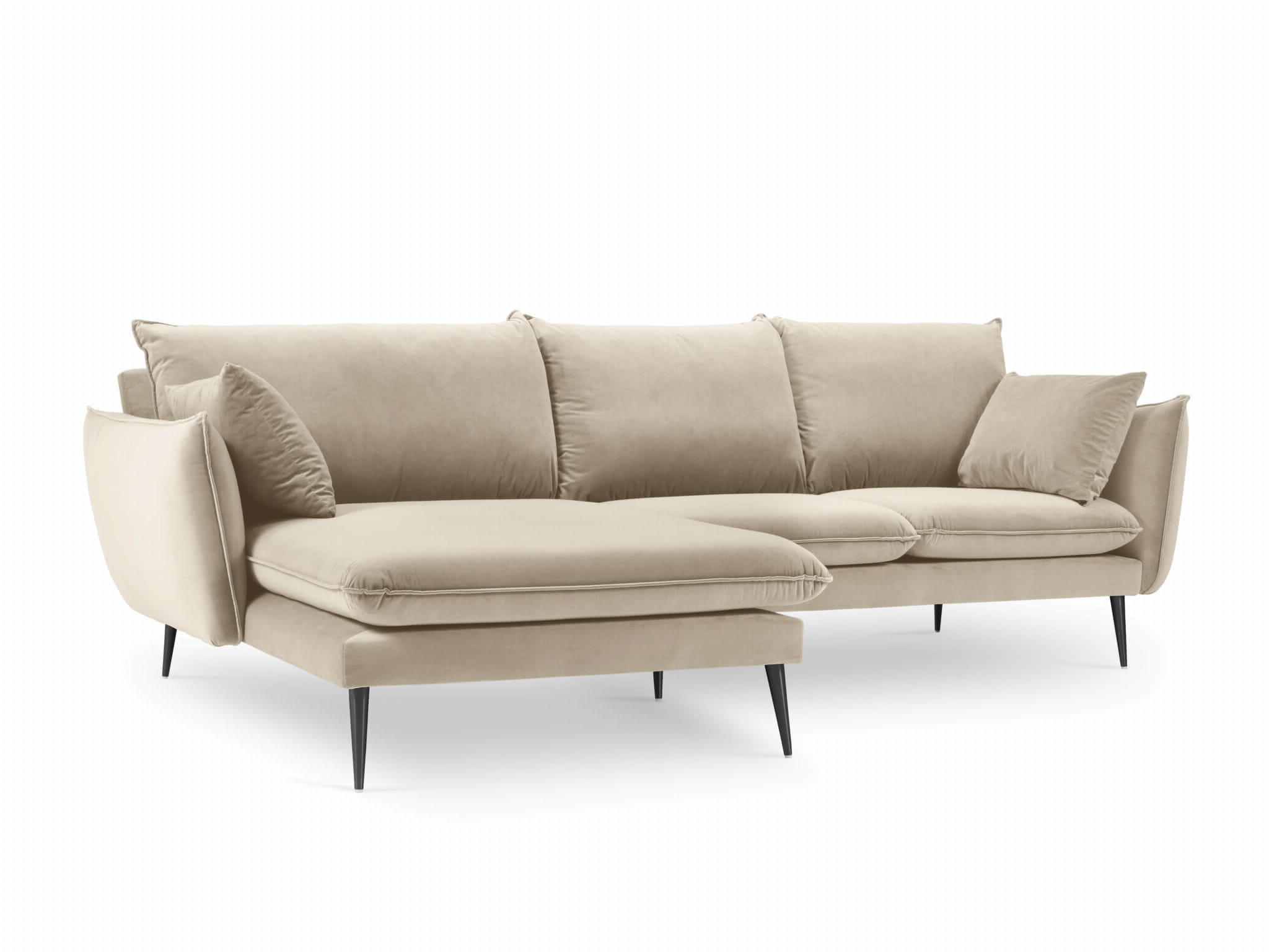 Narożnik beżowy aksamit czarne nóżki Elio