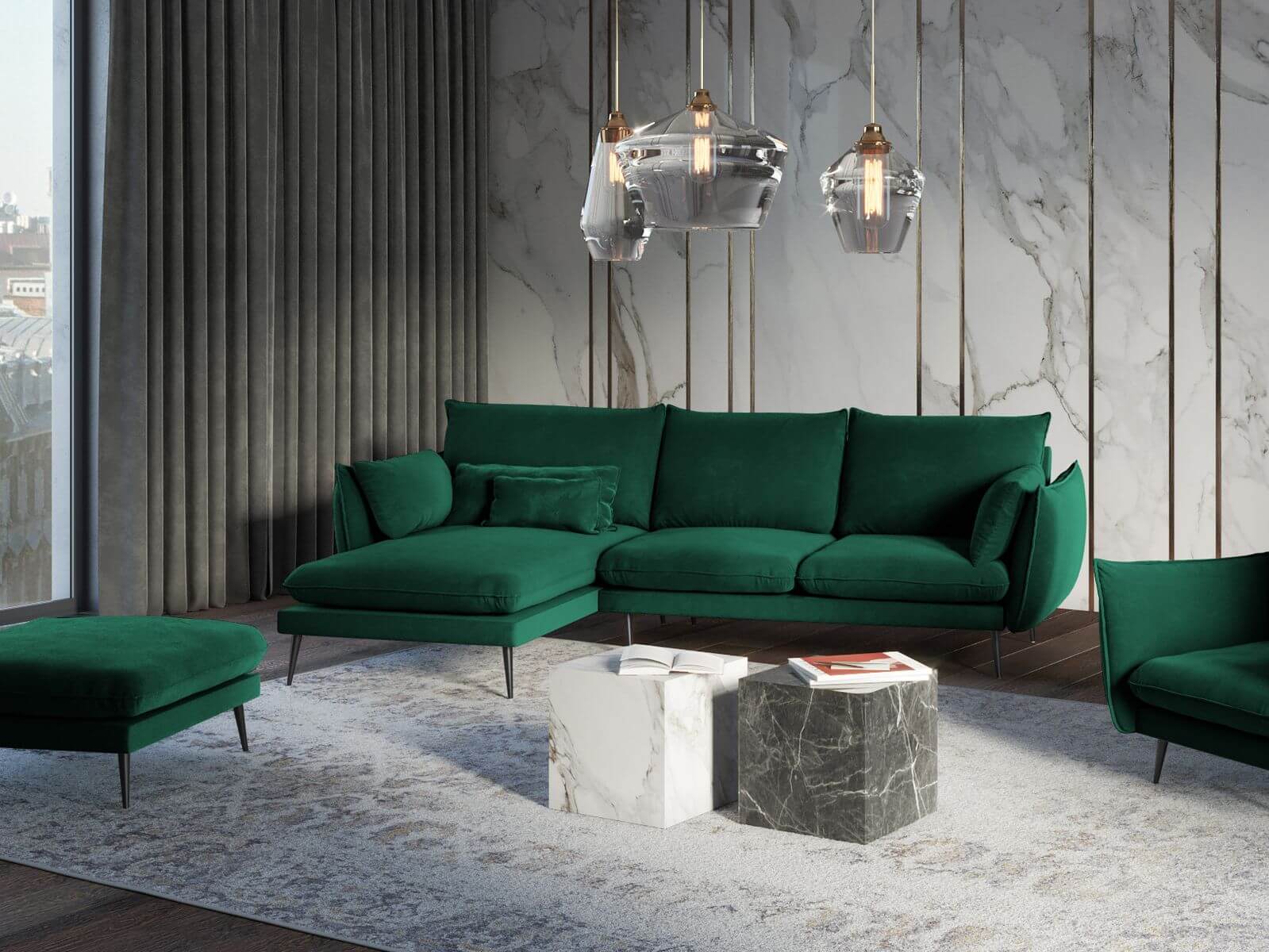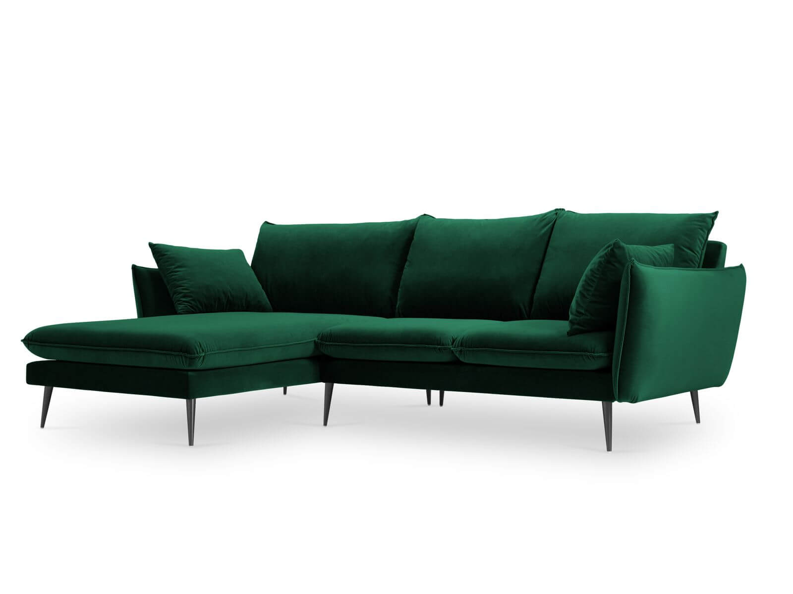 Narożnik butelkowa zieleń aksamit czarne nóżki Elio