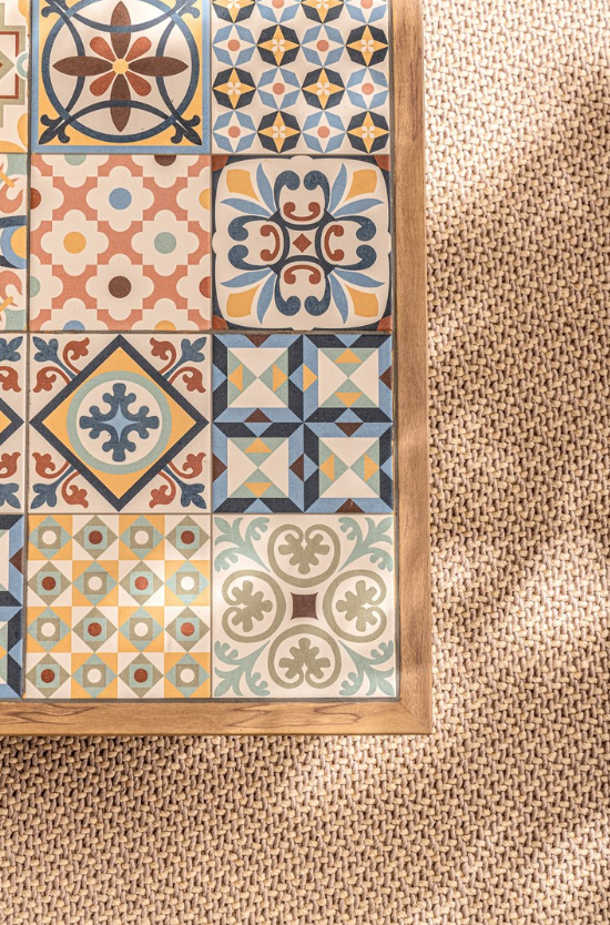 Blat stolika: Hiszpańskie płytki porcelanowe szkliwione