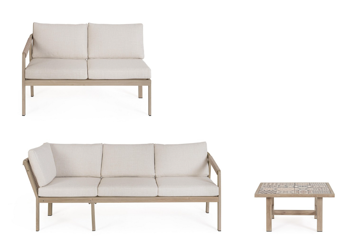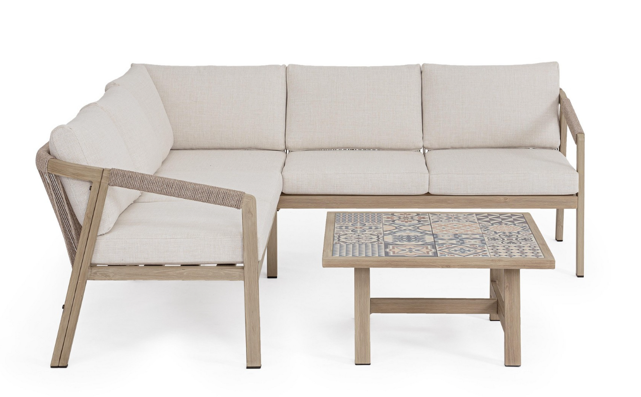 Narożnik Kalimera Timber od włoskiej marki Bizzotto to przemyślana kompozycja, która oferuje mnóstwo miejsca do wypoczynku w gronie bliskich, łącząc piaskową estetykę z najwyższą funkcjonalnością.