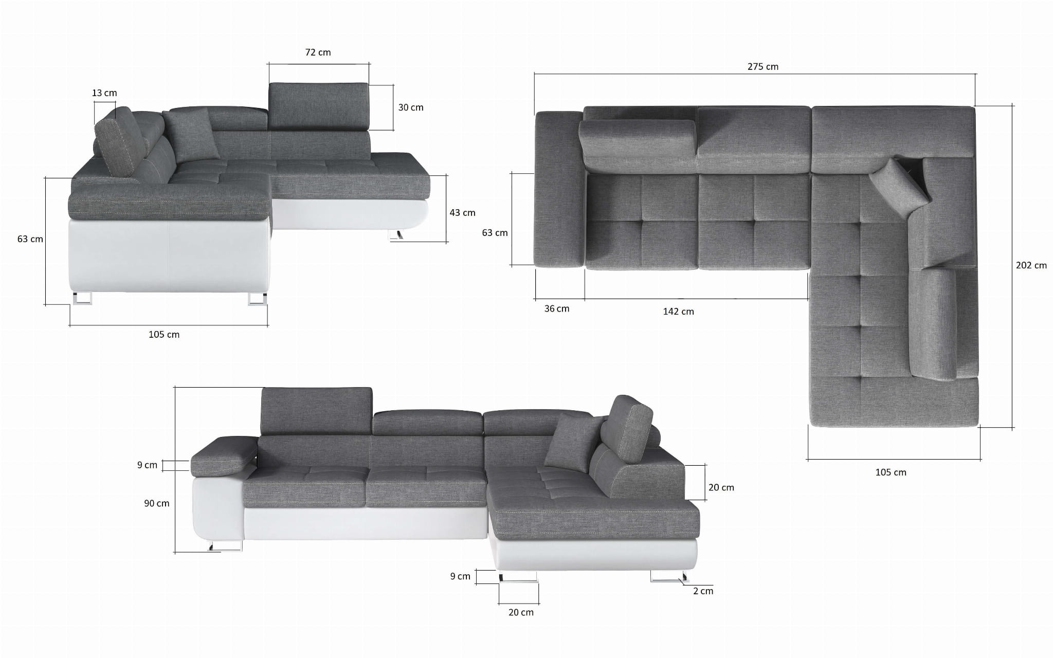 Wysokość bez poduszek: 70 cm