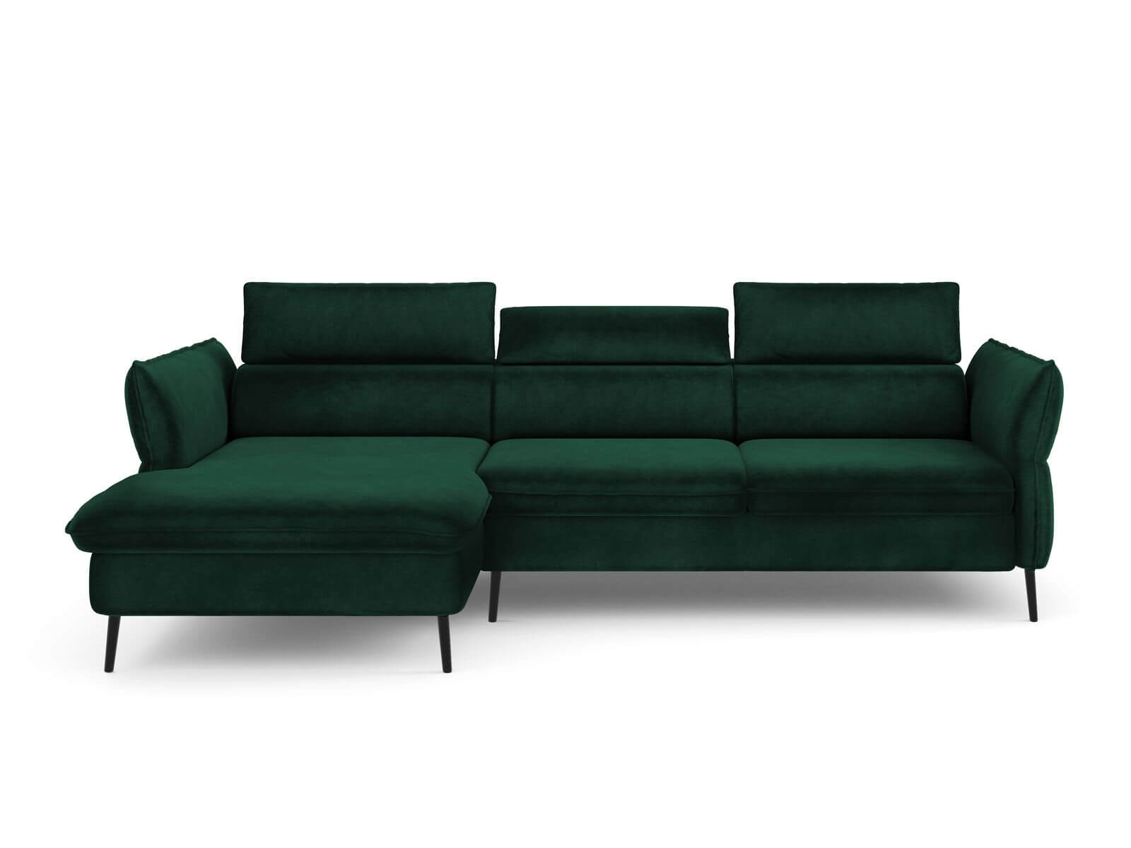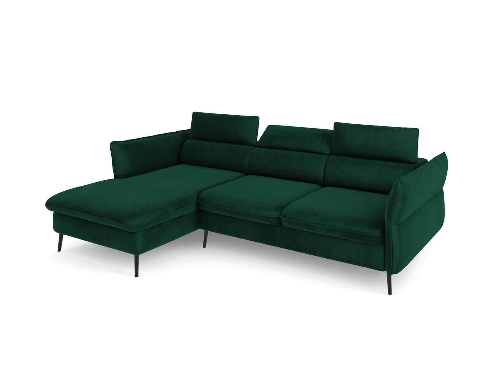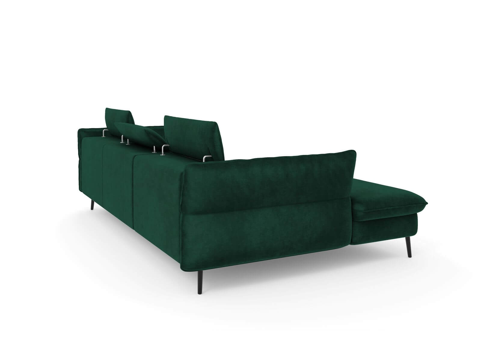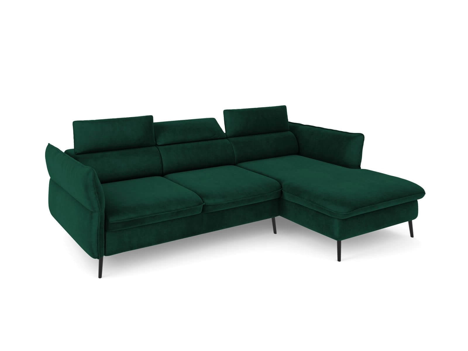 W tej ofercie prezentujemy rozkładany narożnik Valentina w kolorze butelkowej zieleni - Riviera 38 na czarnych metalowych nóżkach.