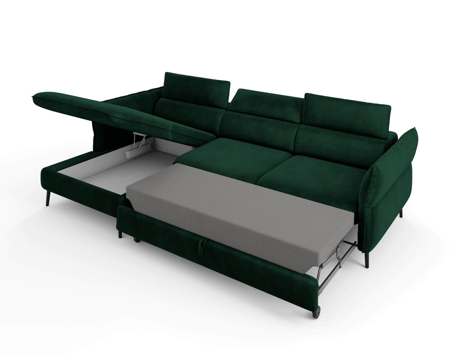 Narożnik z funkcją spania Valentina butelkowa zieleń aksamit
