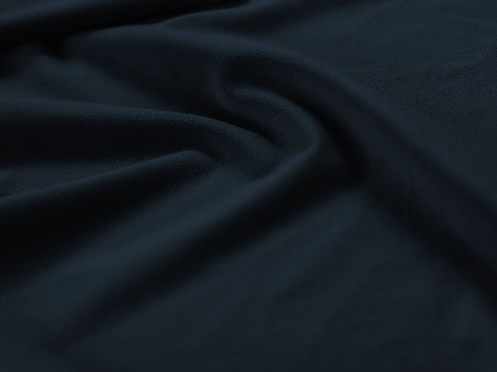 Granatowy, rozkładany narożnik Valentina tapicerowany jest luksusową, aksamitną tkaniną obiciową Riviera z delikatnym połyskiem. Materiał ten jest miękki i jedwabisty w dotyku. Tkanina Riviera posiada bardzo dobrą odporność na ścieranie (100000 cykli), co znacznie zmniejsza ryzyko jej uszkodzenia. Jest to idealny wybór do eleganckich projektów mebli i aranżacji wnętrz.