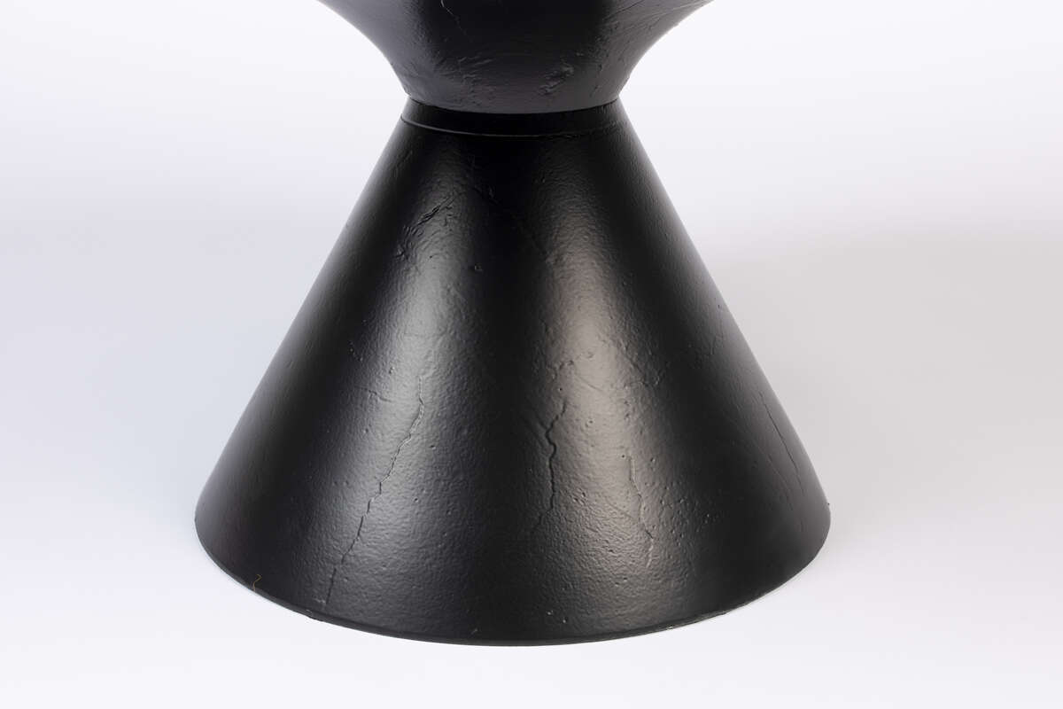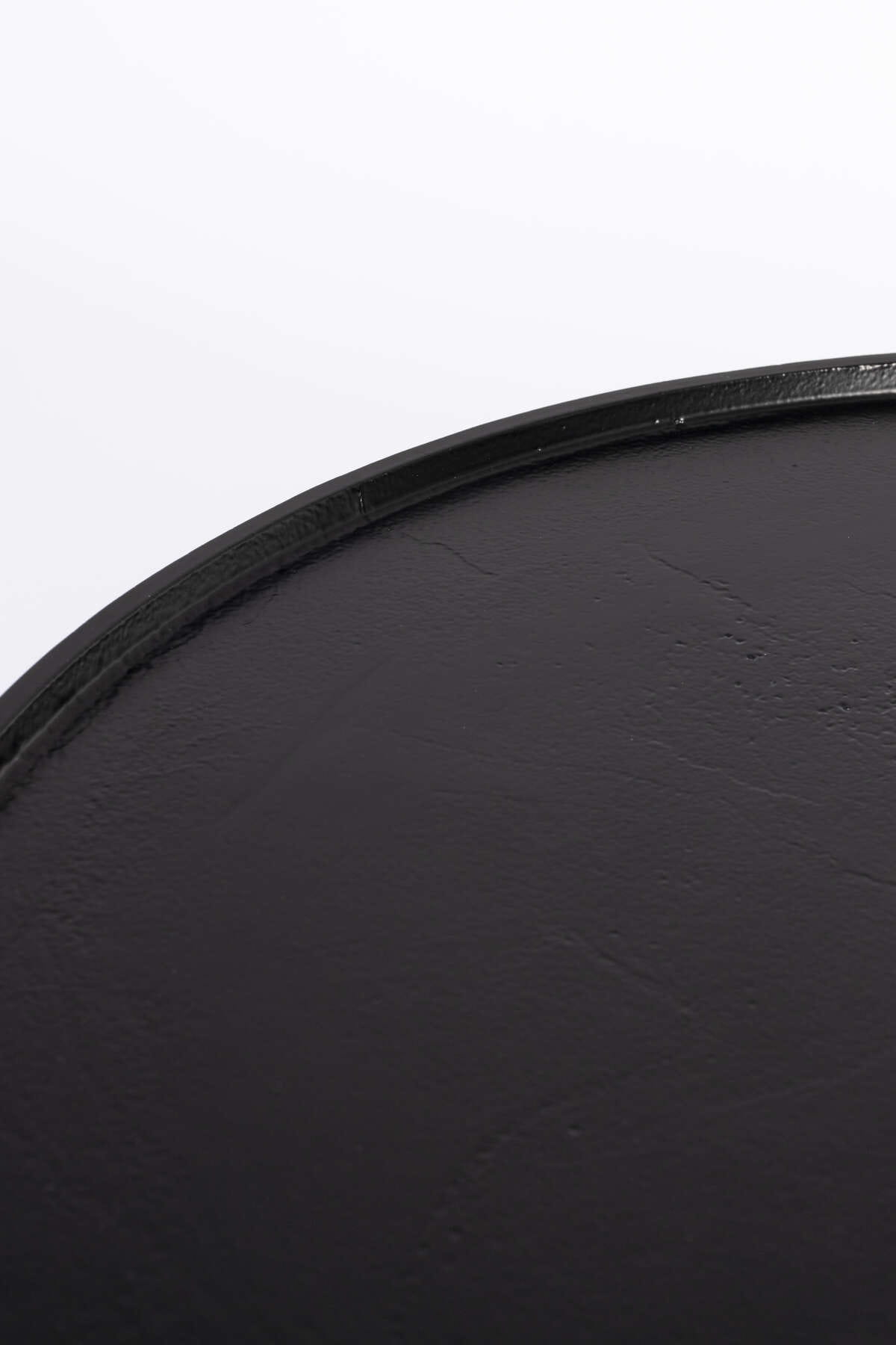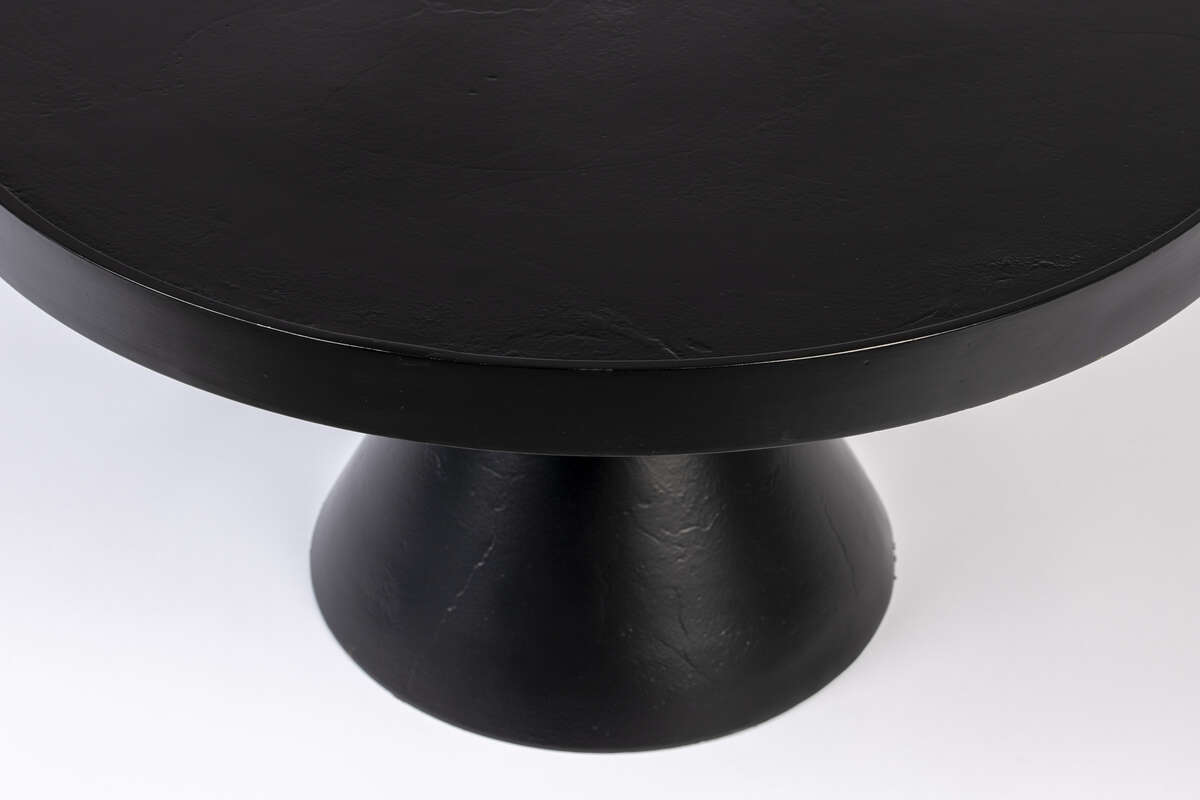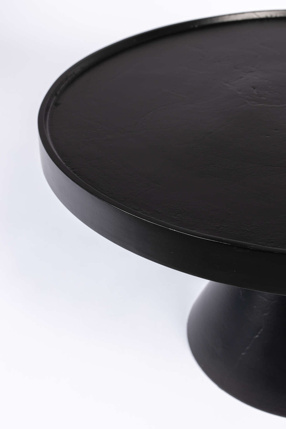 Całość wykonana została z odlewu aluminiowego malowanego proszkowo w kolorze czarnym, dzięki czemu stolik posiada wytrzymałą powłokę, która zapewnia odporność na korozję i zarysowania, a także daje doskonały wygląd i kolor. Posiada jedwabisty połysk, który doskonale podkreśla jego wyjątkowy design o kompaktowej formie. Podwyższona krawędź blatu skutecznie blokuje wszelkie rozlania płynów.