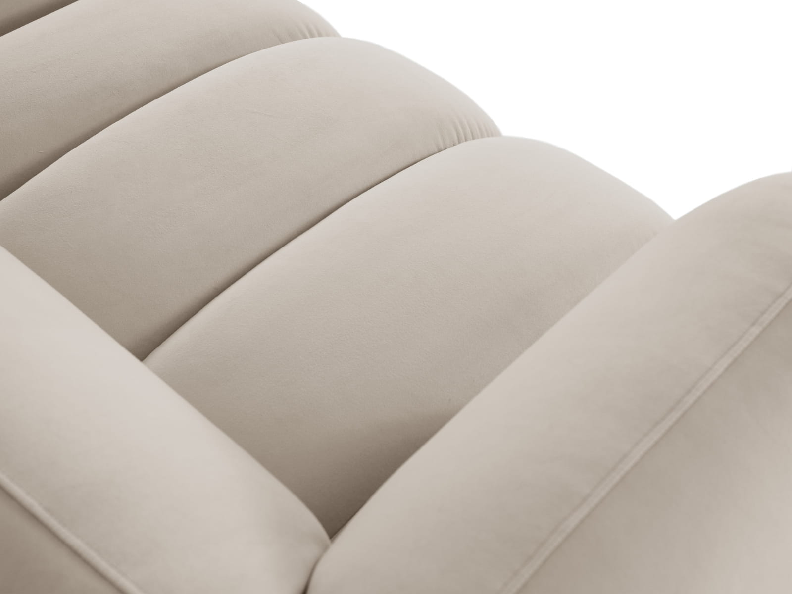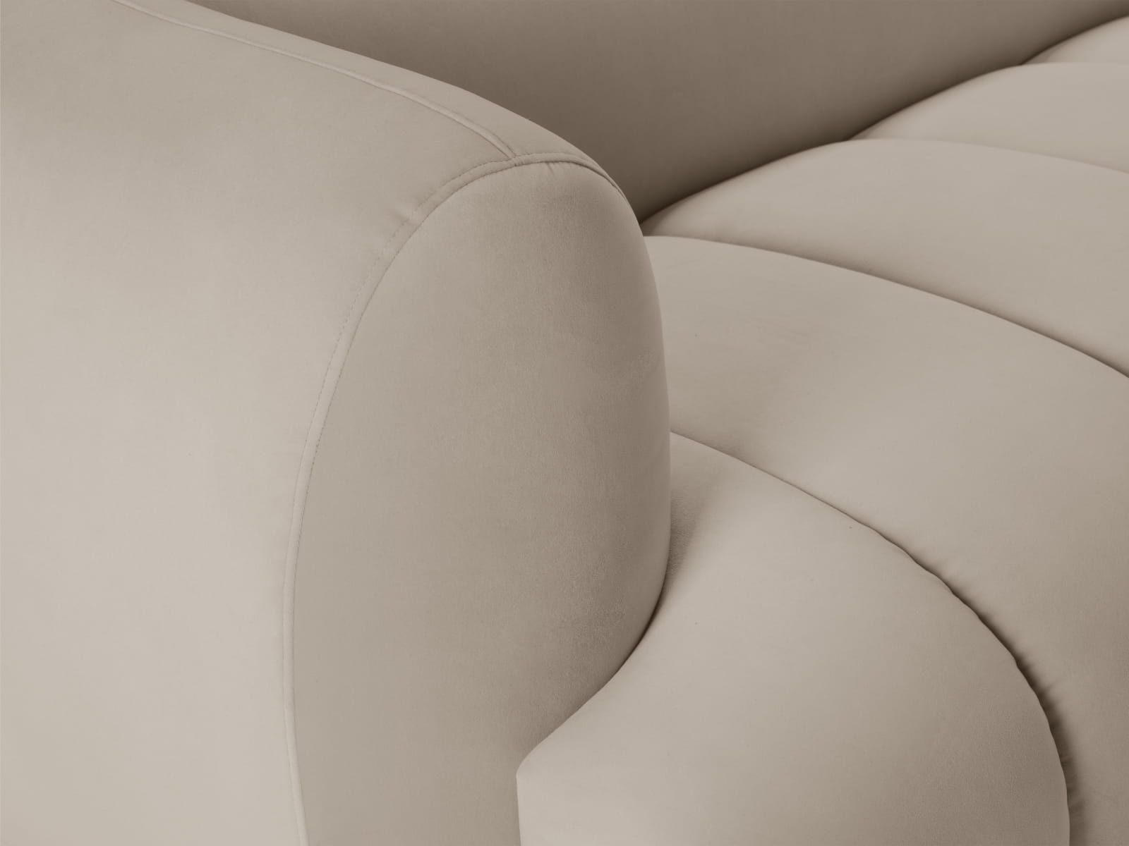 Jednym z charakterystycznych elementów designu są liczne przeszycia dzielące siedzisko na segmenty. Dzięki nim sofa Harry wygląda nie tylko stylowo, ale również zyskuje na ergonomii. Każdy segment siedziska został zaprojektowany z myślą o maksymalnym komforcie i podtrzymaniu ciała, co daje niepowtarzalne wrażenie otulenia i miękkości. Przeszycia dodają też subtelnej faktury, która w połączeniu z miękkim welurem tworzy luksusowy efekt wizualny.