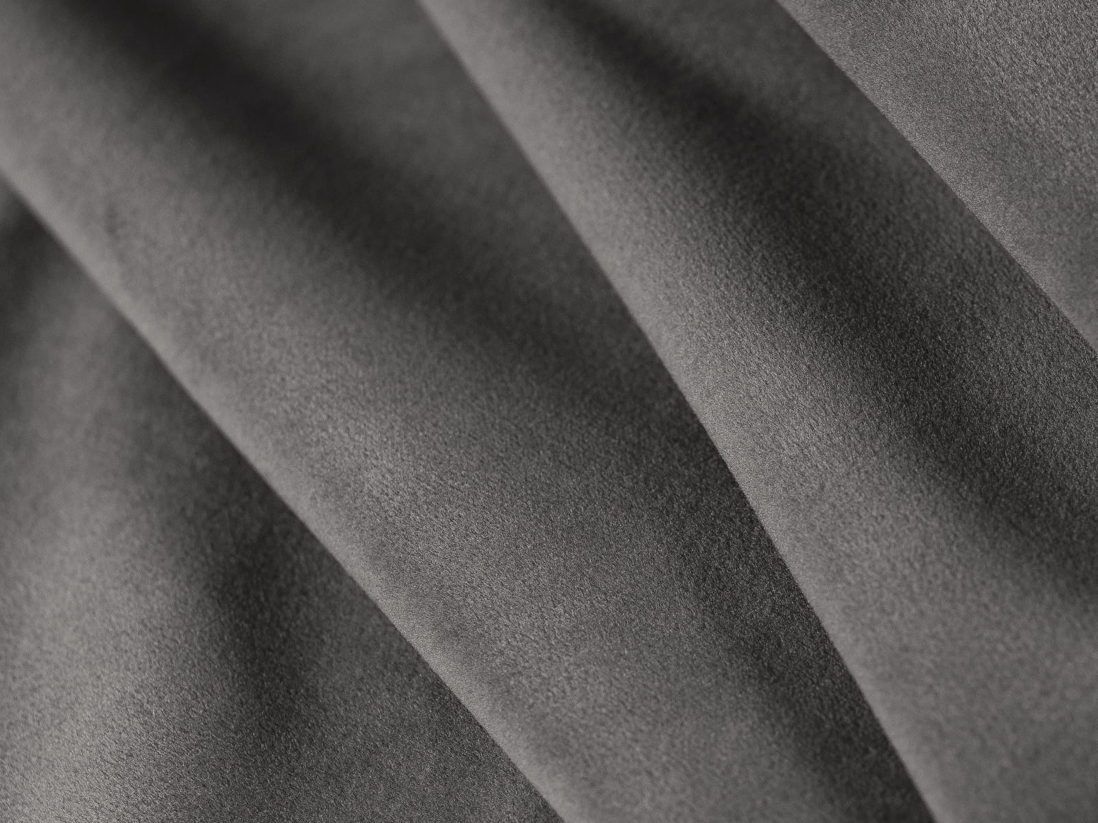 Sofa Jodie jest tapicerowana tkaniną - Bluvel 14. To jedwabisty welur o subtelnym połysku, który świetnie imituje aksamit. Jest niezwykle miękka w dotyku, a jednocześnie wyjątkowo odporna na ścieranie (test Martindale’a: 50 000, 320 g/m²), co minimalizuje ryzyko uszkodzeń i zapewnia długowieczność mebla. Dłuższe włosie materiału sprawia, że percepcja koloru może się nieco zmieniać w zależności od kąta padania światła, nadając sofie unikalnego charakteru. Tkanina przeszła test papierosa, co oznacza, że jest odporna na tlenie się i zapłon płomieniem, spełniając normę PN-EN 1021-1:2014-12.