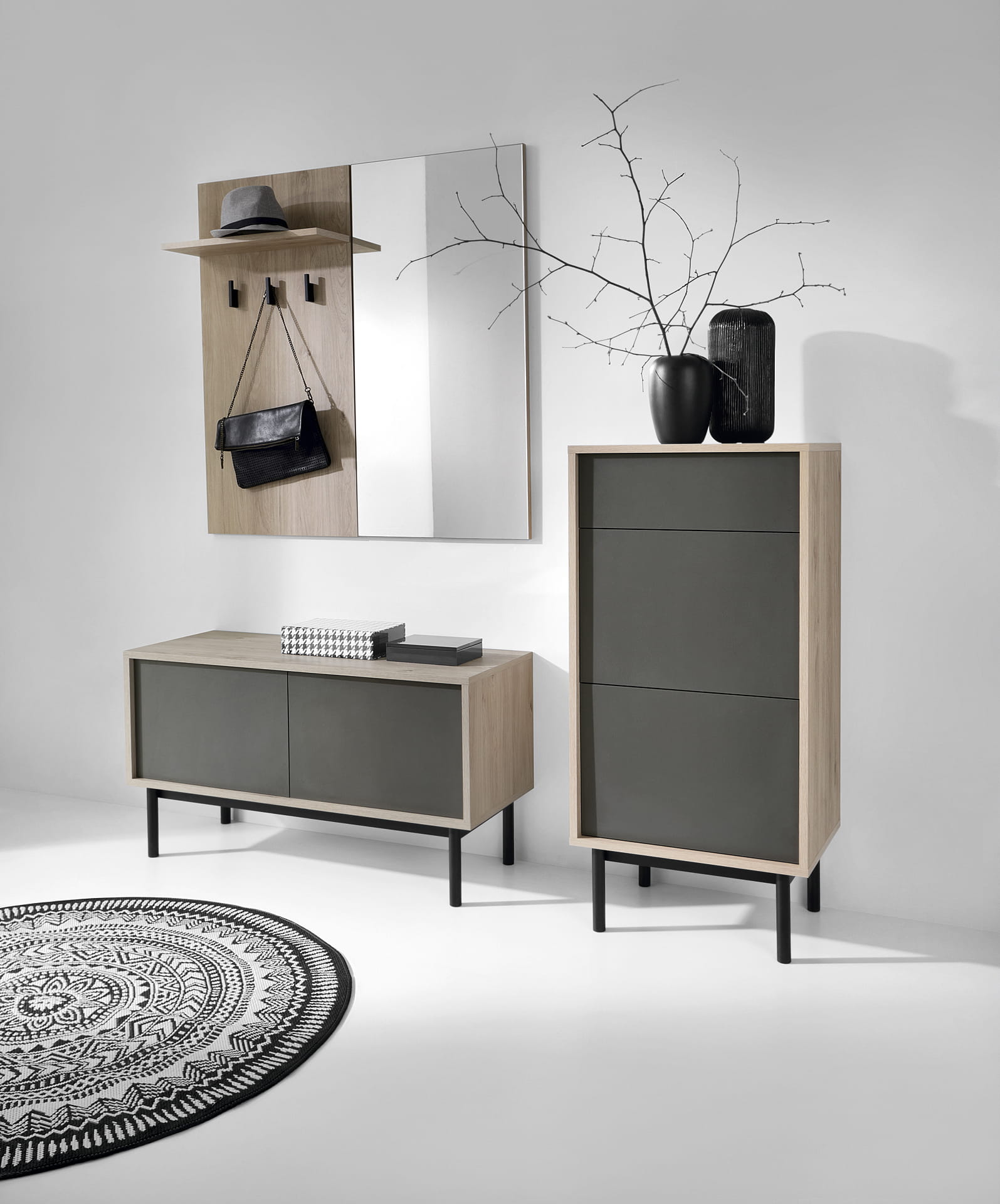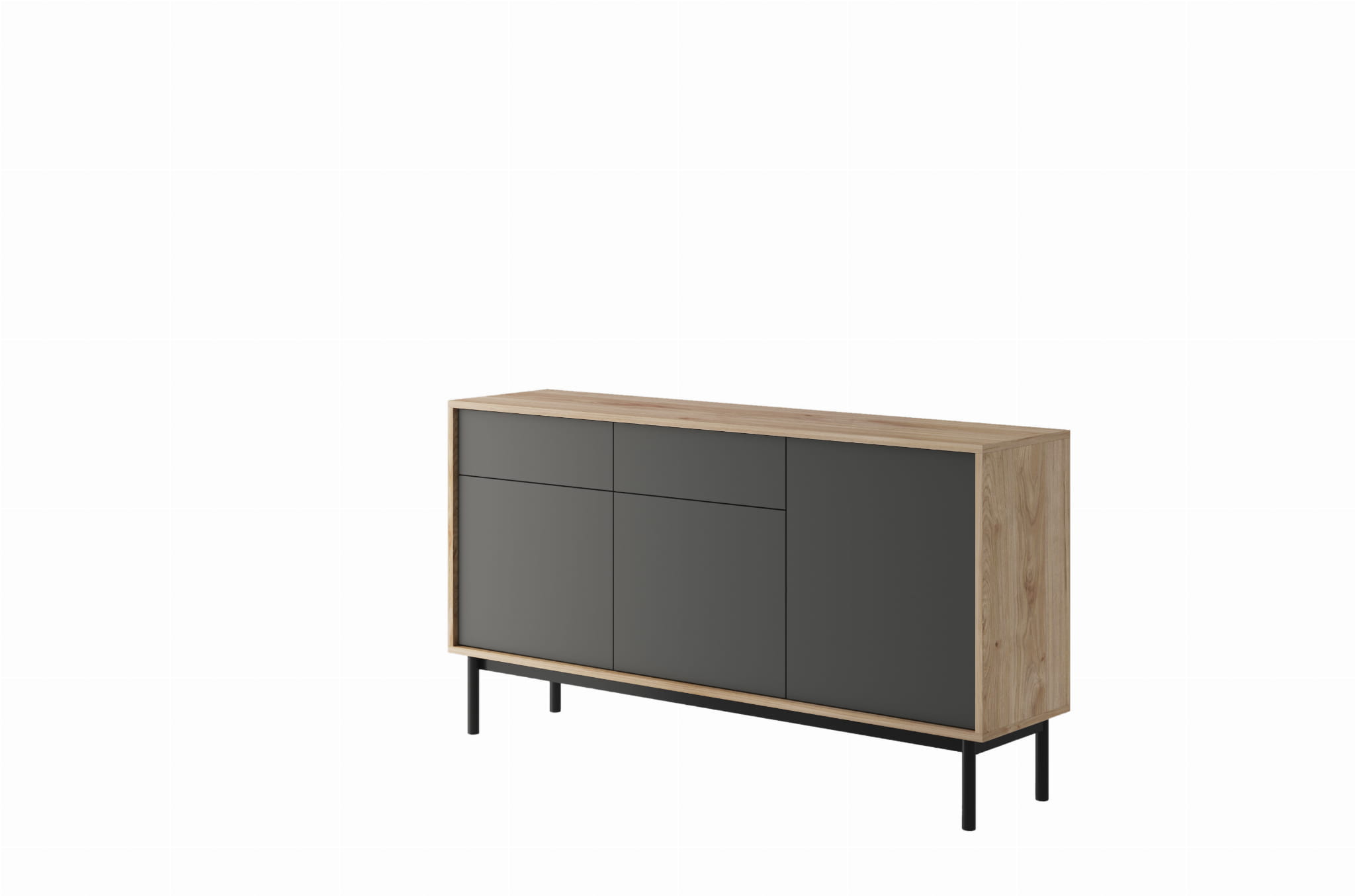 To pełna uniwersalnego wdzięku propozycja o niezwykle szerokich możliwościach aranżacyjnych. Sprawdzi się jako doskonały i praktyczny dodatek do wnętrza. Ta nowoczesna komoda wykonana jest z wysokiej jakości płyty laminowanej, która charakteryzuje się odpornością na zarysowania, wilgoć i wysoką temperaturę. Obrzeża wykończono odporniejszą na codzienne użytkowanie okleiną ABS.