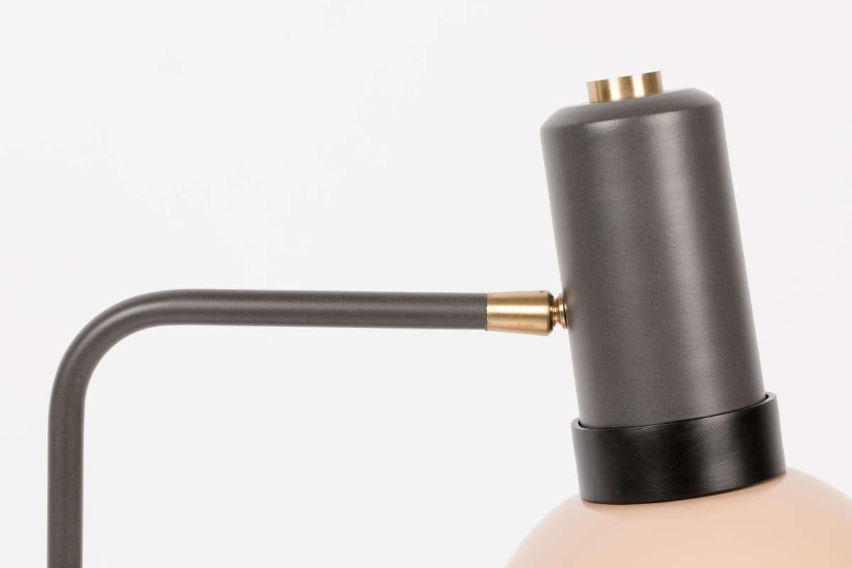 Lampa Nude Charlie to minimalistyczna, prosta forma w pięknej, pastelowej kolorystyce. Łączy w sobie 3 subtelne odcienie– jasno-beżowy klosz, grafitowy uchwyt i czarny korpus. Całość wykończona jest okrągłą, czarną podstawą z której wychodzi teksturowany kabel, wyposażony w nożny włącznik światła. Lampa Charlie została wyposażona w mosiężne akcenty, dodające całości charakteru. Ciemne komponenty lampy zostały przełamane złotymi elementami znajdującymi się przy kloszu, tworząc delikatny kontrast.