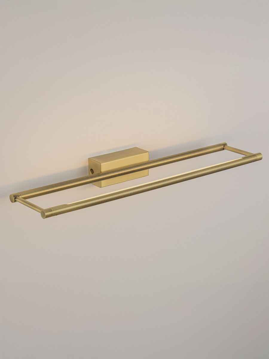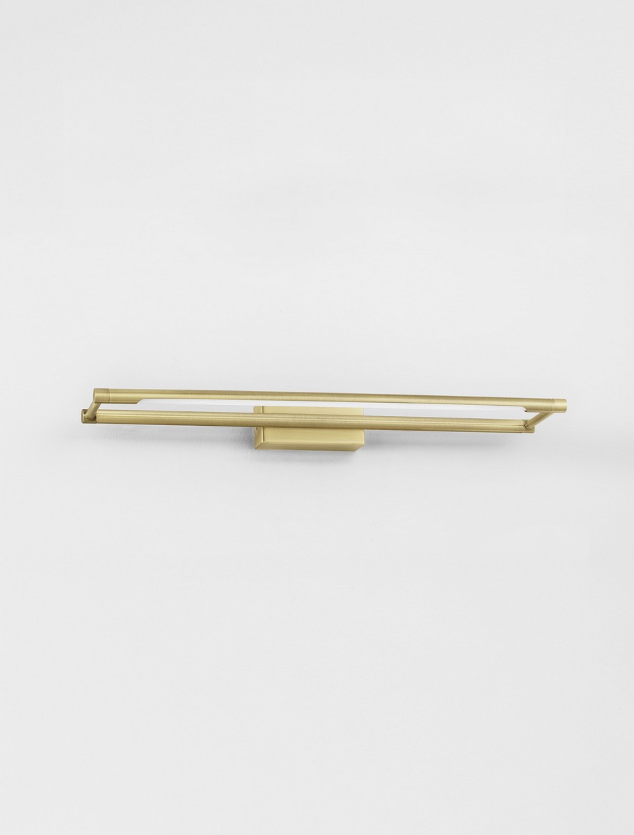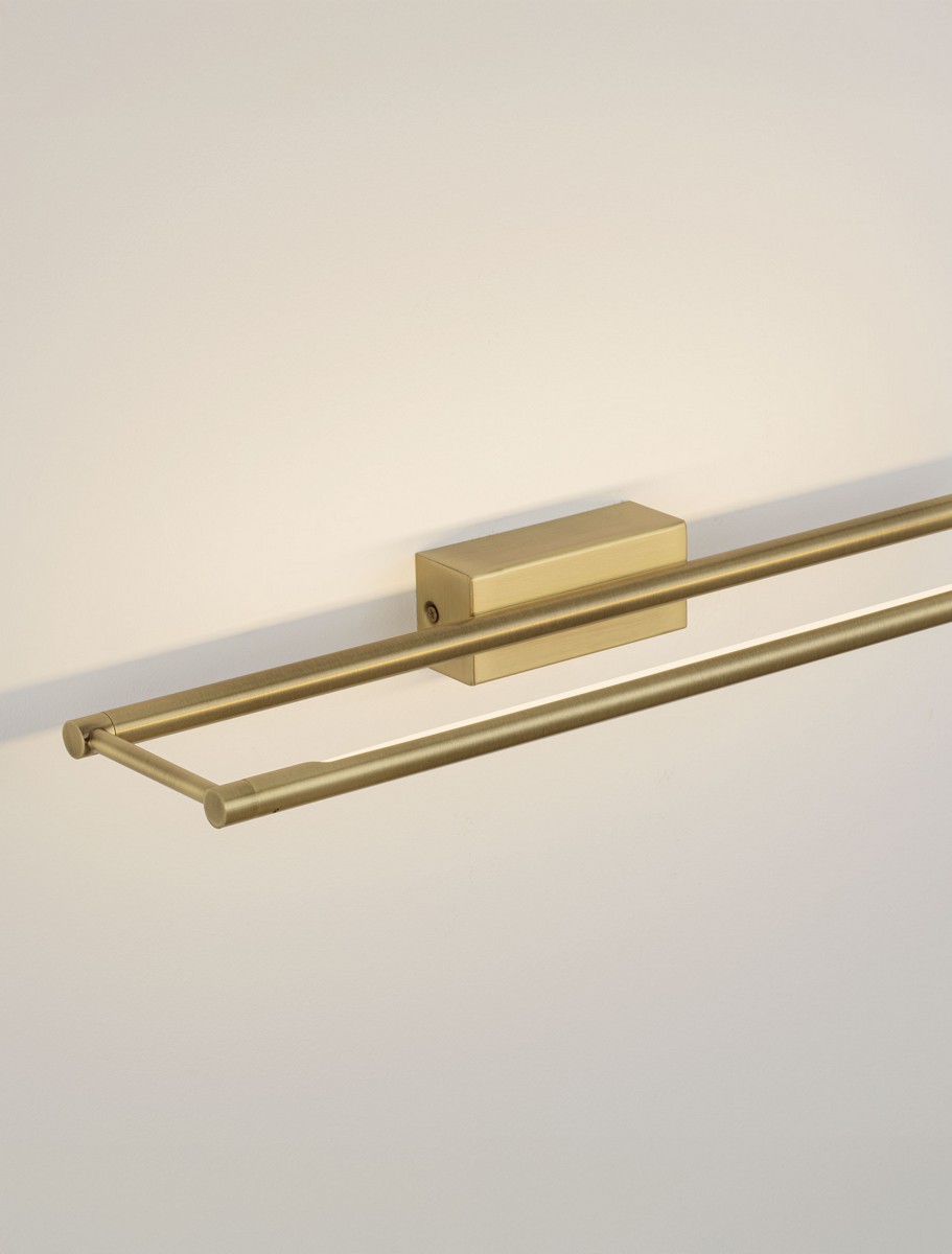 Lampa ścienna Aldaia to nowoczesna oprawa o smukłej, linearnej formie, która stanowi kwintesencję minimalistycznego designu. Wykonana z precyzyjnego połączenia stali i aluminium, została wykończona w szlachetnym odcieniu szczotkowanego złota. Matowa, teksturalna powierzchnia nadaje jej luksusowy i współczesny charakter, sprawiając, że oprawa staje się biżuteryjnym akcentem dekoracyjnym w każdym wnętrzu.