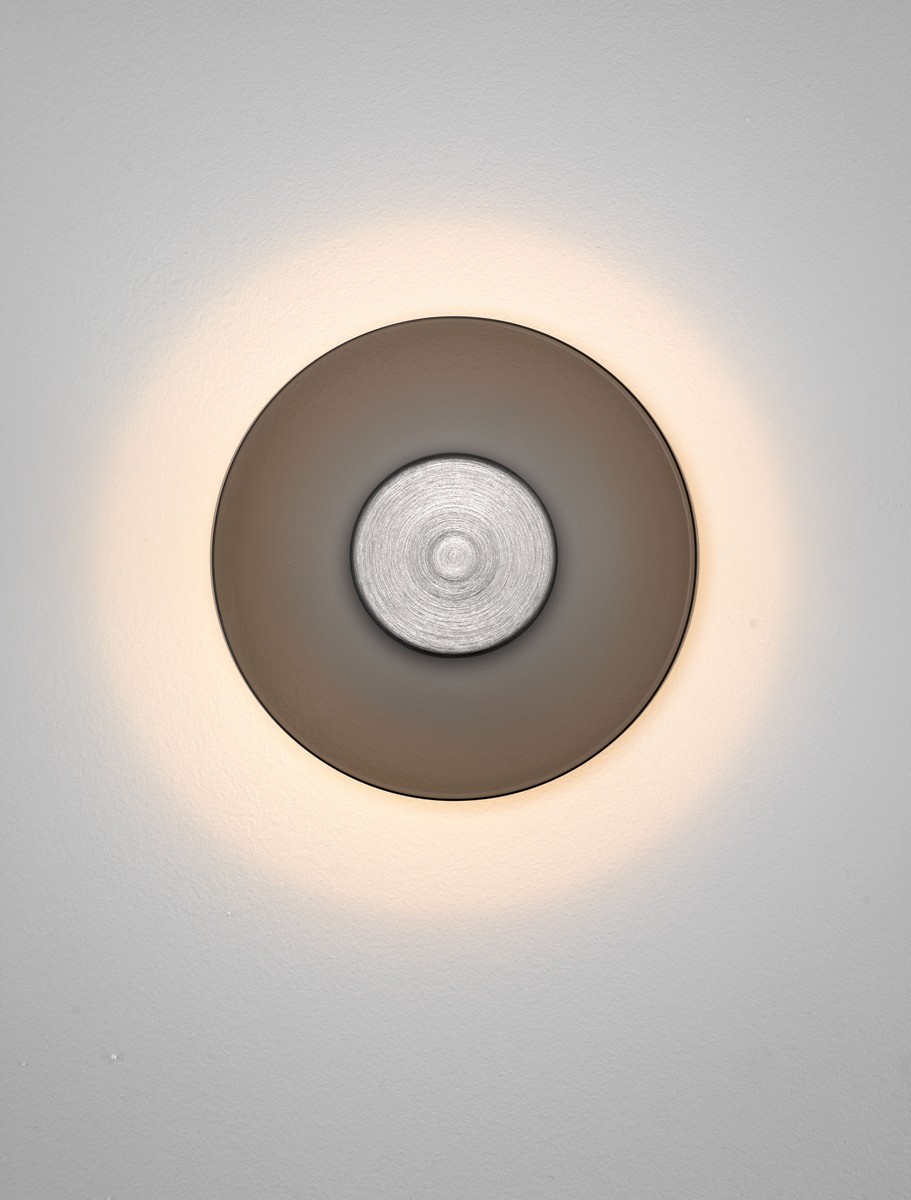 Kinkiet Huanuco od marki Nova Luce to wyrafinowana oprawa ścienna, która zachwyca minimalistyczną formą i efektownym sposobem świecenia. Konstrukcja lampy opiera się na aluminiowej bazie oraz dysku z dymionego szkła (Smokey), co nadaje jej nowoczesny i lekko industrialny charakter. Dzięki kompaktowej głębokości wynoszącej zaledwie 6,7 cm, oprawa idealnie przylega do ściany, stanowiąc dyskretny, a zarazem stylowy element dekoracyjny.