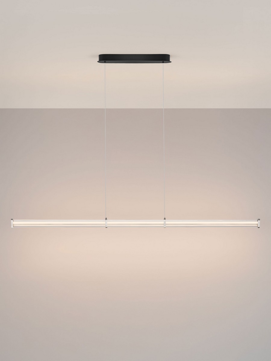 Sercem oprawy jest zintegrowany moduł LED o mocy 21 W, który emituje światło o przyjemnej dla oka, ciepłej barwie. Dzięki zastosowaniu strukturalnego materiału, światło rozchodzi się równomiernie wzdłuż całej długości 151 cm, eliminując efekt olśnienia i tworząc miękką, pasmową iluminację. Lampa jest w pełni przystosowana do współpracy z zewnętrznymi ściemniaczami Triac, co pozwala na płynną regulację jasności i dopasowanie klimatu wnętrza do aktualnych potrzeb.