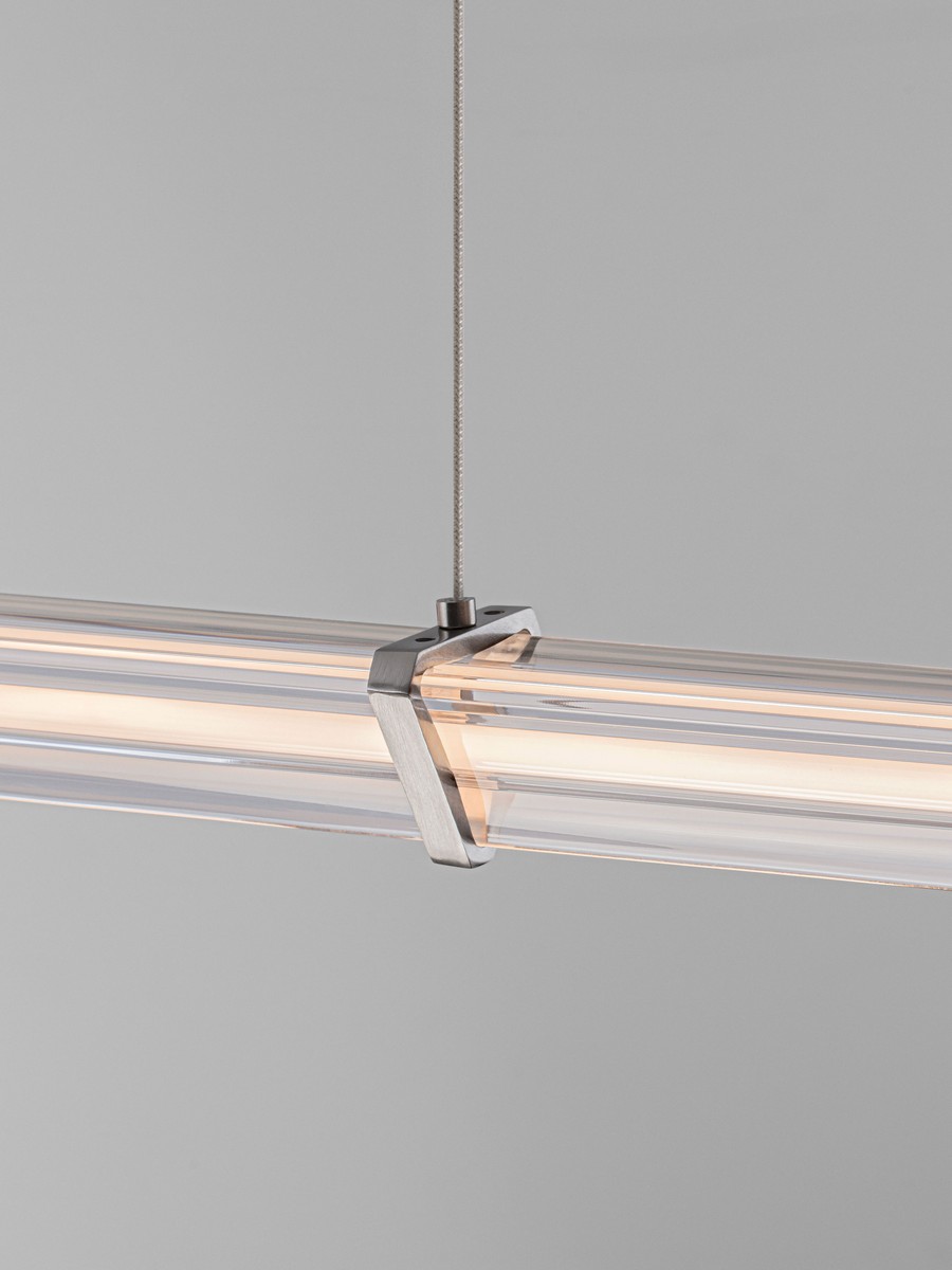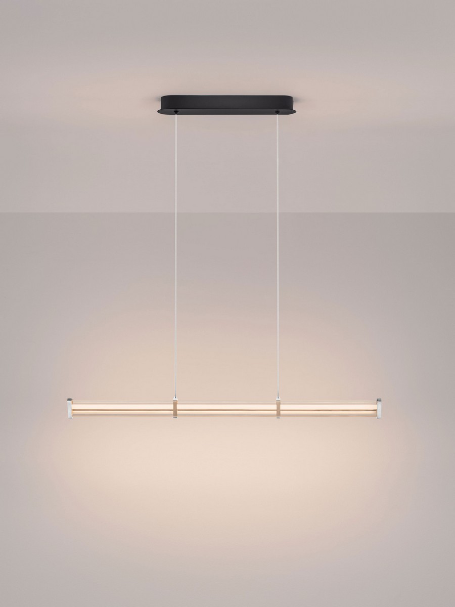 Lampa wisząca Conil od Nova Luce to esencja nowoczesnego minimalizmu, która wprowadza do wnętrza architektoniczny porządek i elegancję. Wariant o szerokości 88 cm to idealne rozwiązanie do mniejszych przestrzeni, oferujące subtelną, pasmową iluminację. Podłużny klosz o unikalnym, trójkątnym przekroju posiada wyraźną geometryczną strukturę, która efektownie rozprasza światło, tworząc luksusowy klimat bez efektu olśnienia.