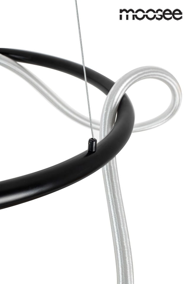 MOOSEE lampa wisząca SERPIENTE 60 czarna.Okrągły, metalowy stelaż w kolorze czarnym przepleciony elastycznym wężem w oplocie z tkaniny, który skrywa ledowe źródło światła.