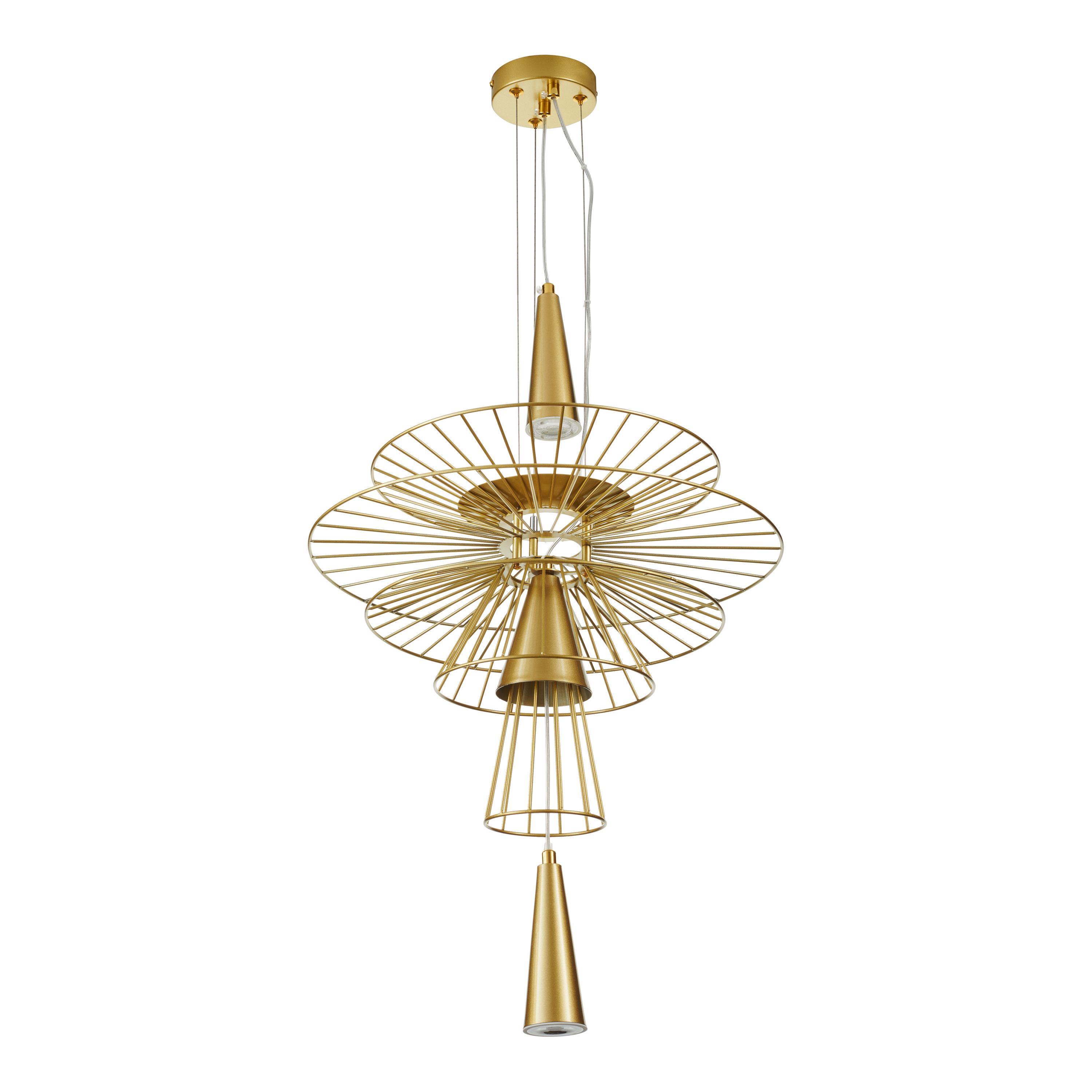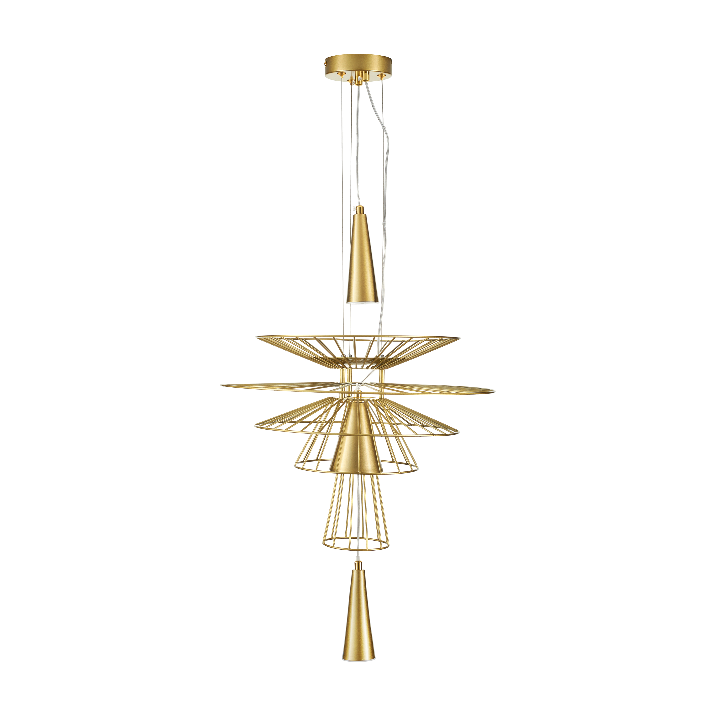 Lampa wisząca SUSSO to wyjątkowa propozycja o futurystycznym i artystycznym charakterze. Jej konstrukcja oparta jest na kaskadowo ułożonych, metalowych pierścieniach i stożkach, które tworzą przestrzenną, dynamiczną formę przypominającą nowoczesną rzeźbę. Ten niebanalny design sprawia, że SUSSO staje się nie tylko źródłem światła, ale również przyciągającym uwagę elementem dekoracyjnym.