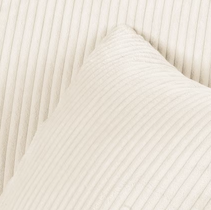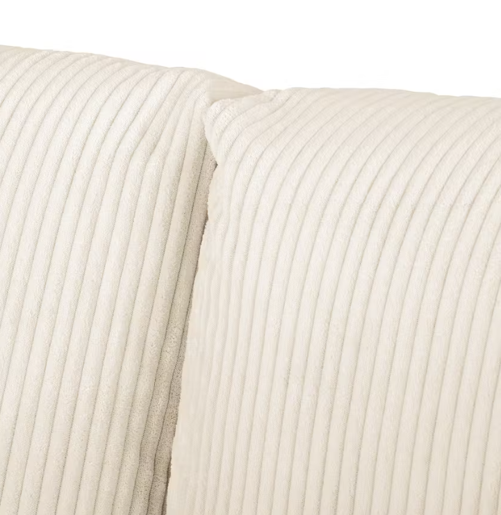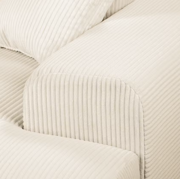 Sofa tapicerowana jest tkaniną Lincoln 03. To miękka, elegancka tkanina sztruksowa o wyrazistej, pionowej strukturze, która łączy przytulność z wysoką wytrzymałością. Dzięki składowi 92% PES i 8% nylonu oraz odporności na ścieranie rzędu 90 000–100 000 cykli Martindale, idealnie sprawdza się na intensywnie użytkowanych meblach. Charakteryzuje się bardzo dobrą odpornością na rozciąganie i rozdarcia, stabilnością szwów oraz solidną odpornością na tarcie, a dodatkowo spełnia normy trudnopalności. Jej miękka faktura i elegancki rysunek sztruksu nadają wnętrzu ciepły, nowoczesny charakter.