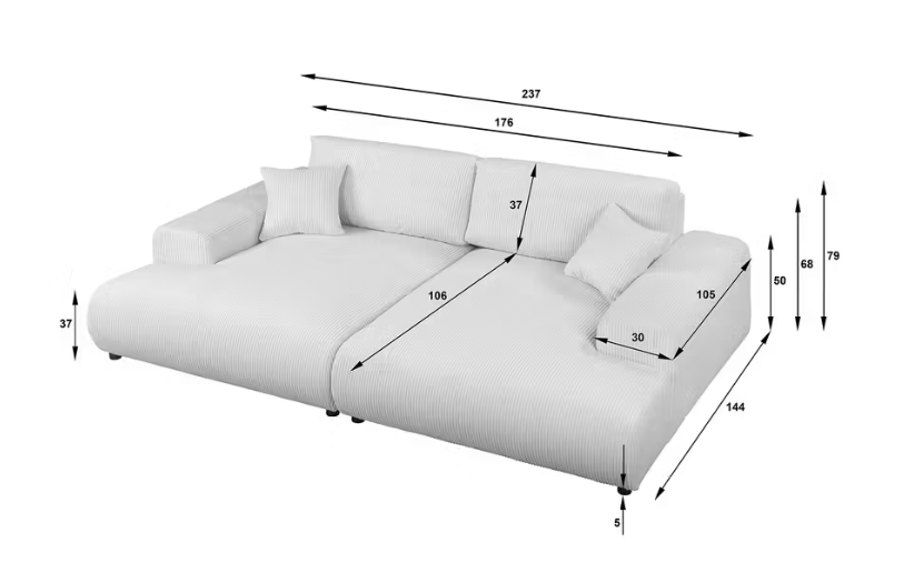 To idealna sofa dla osób, które uwielbiają spędzać wolny czas w pozycji półleżącej: czytając, oglądając ulubione seriale, pracując z laptopem czy po prostu celebrując momenty relaksu. Jej forma zachęca do wypoczynku solo, ale też świetnie sprawdza się jako domowe centrum wieczornych seansów filmowych.