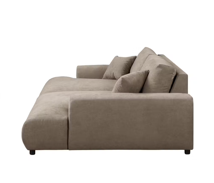 Sofa wyróżnia się wyjątkowo miękką, otulającą linią siedziska – jednym z najszerszych w swojej klasie – dzięki czemu działa jak luksusowe, dzienne łóżko. Delikatnie zaokrąglone boczki i niska konstrukcja nadają jej nowoczesny, harmonijny charakter. Poduchy oparciowe o dużej sprężystości zapewniają wygodne wsparcie, ale jednocześnie można je łatwo zdjąć, tworząc przestrzeń do leżenia o imponującej powierzchni.