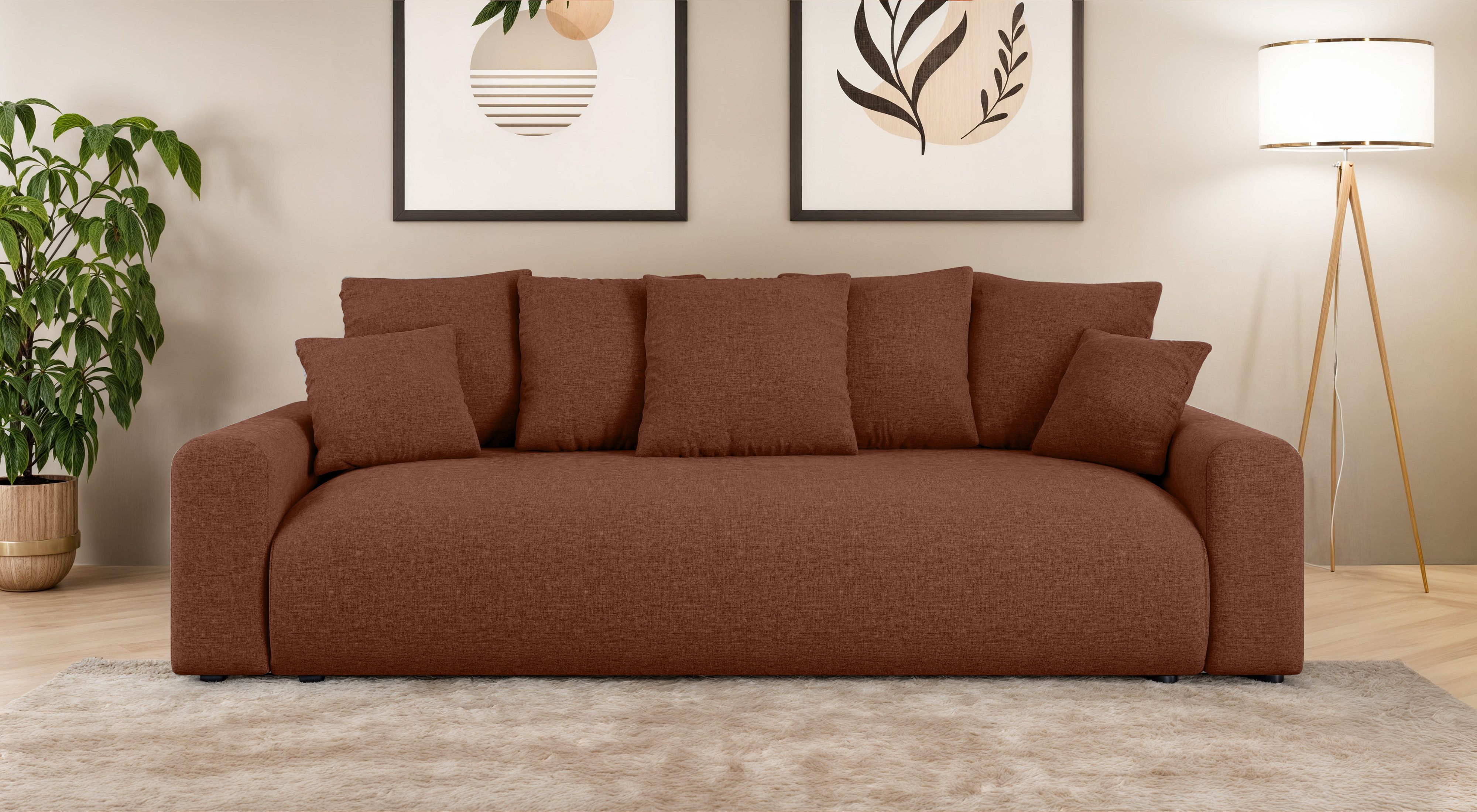 Nowoczesna sofa z funkcją spania Meva Small ceglany szenil