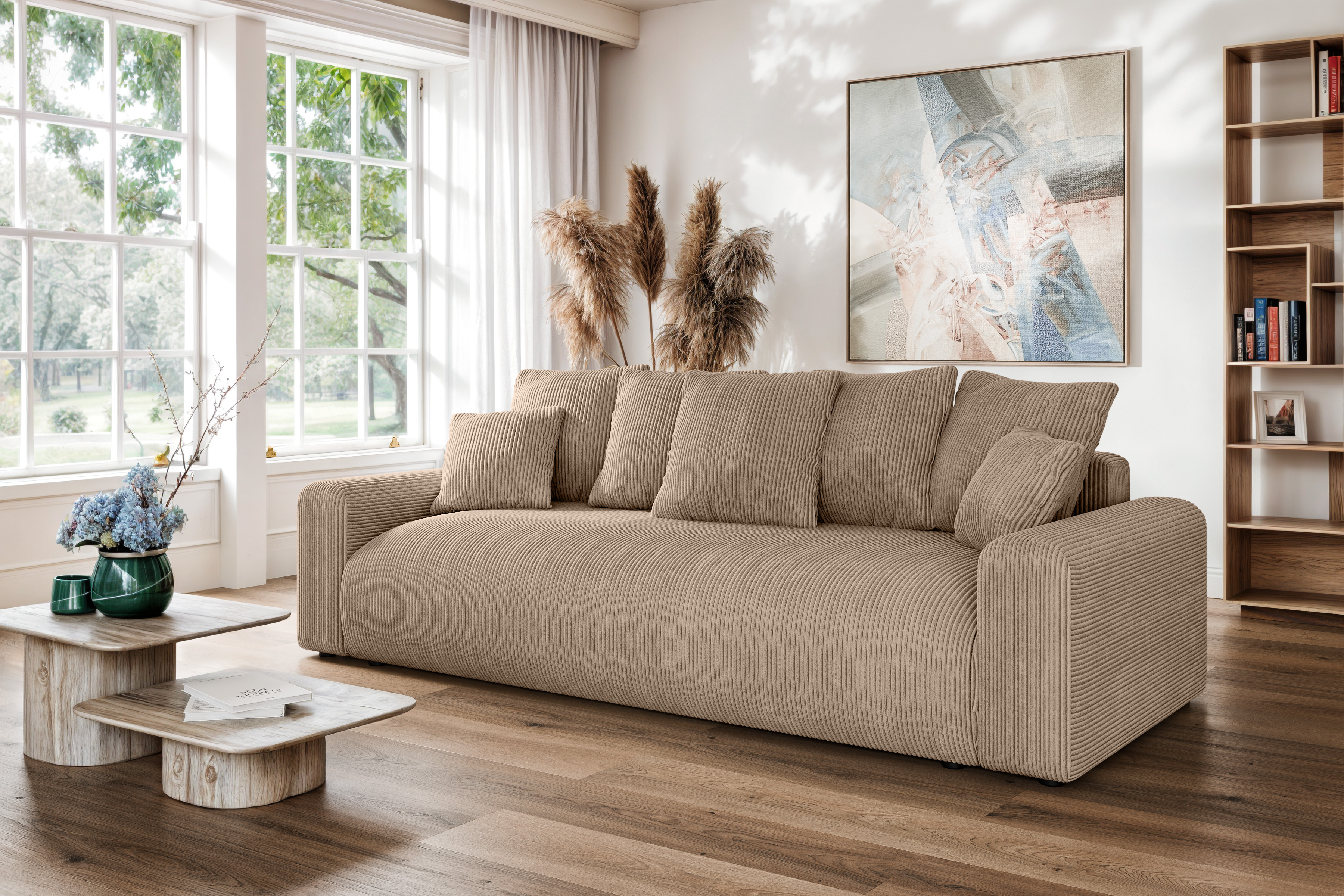Nowoczesna sofa z funkcją spania Meva Small welur capuccino