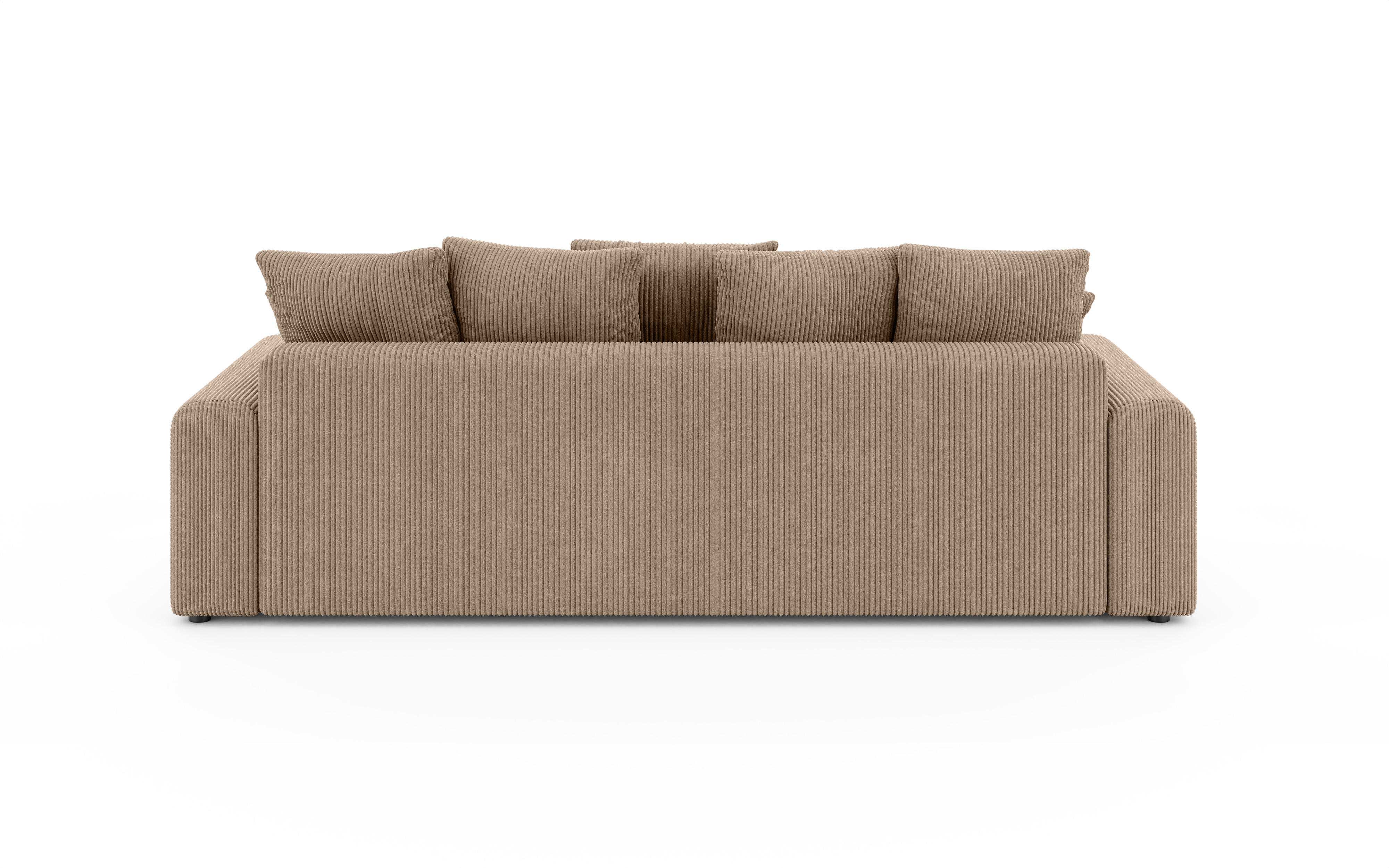 Ten wyjątkowo komfortowy model, dzięki głębokości całkowitej 140 cm, łączy kompaktowe wymiary z wygodą leżanki, stanowiąc idealne miejsce do popołudniowego relaksu. Tkanina charakteryzuje się miękką, welurową powierzchnią i prążkowaną fakturą, która jest wyjątkowo przyjemna w dotyku.