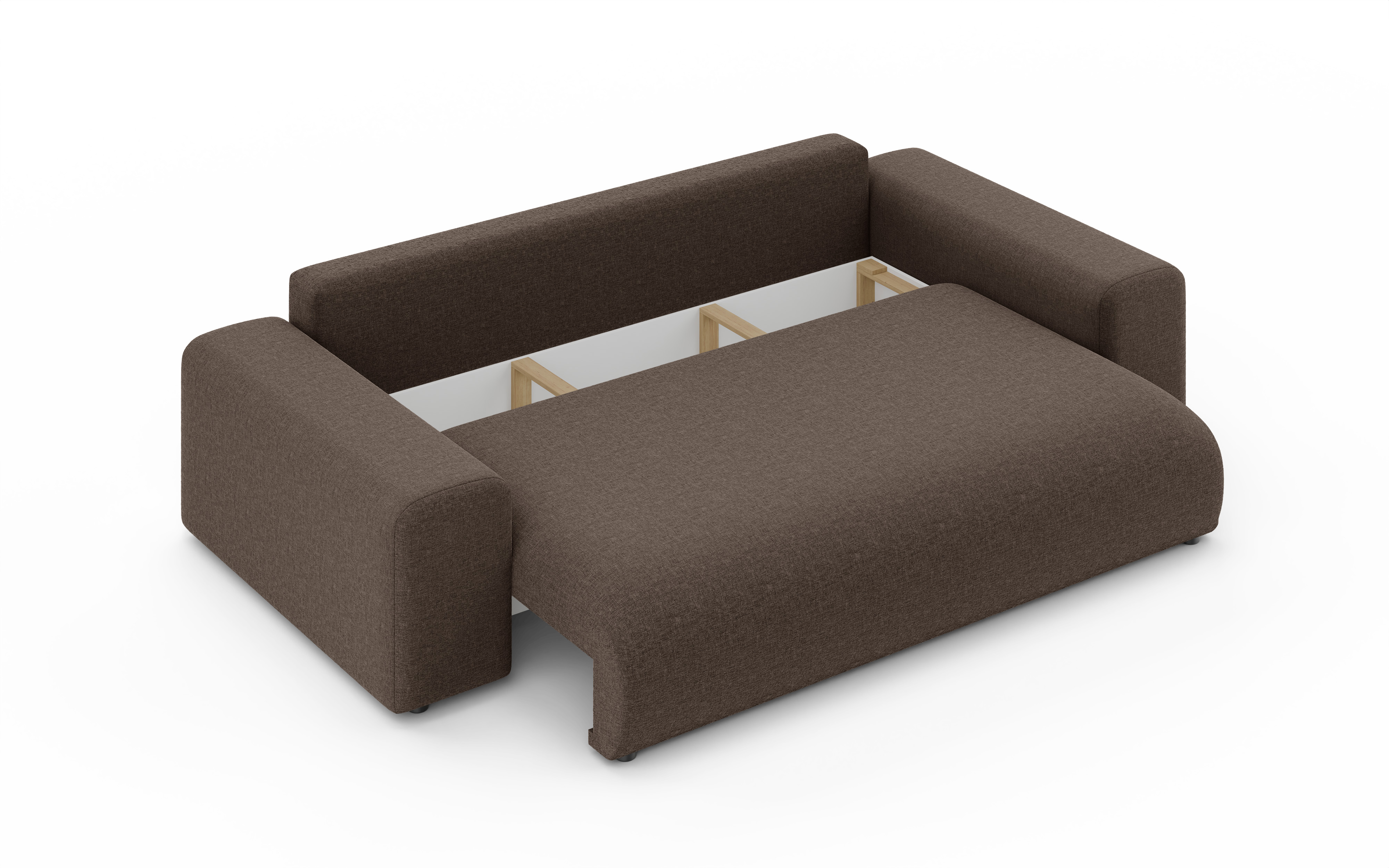 Sofa jest wyposażona w praktyczną funkcję spania, dzięki czemu łatwo przekształcisz ją w wygodne łóżko dla gości. Jej minimalistyczny design skupia się na czystej formie i maksymalnym komforcie użytkowania.