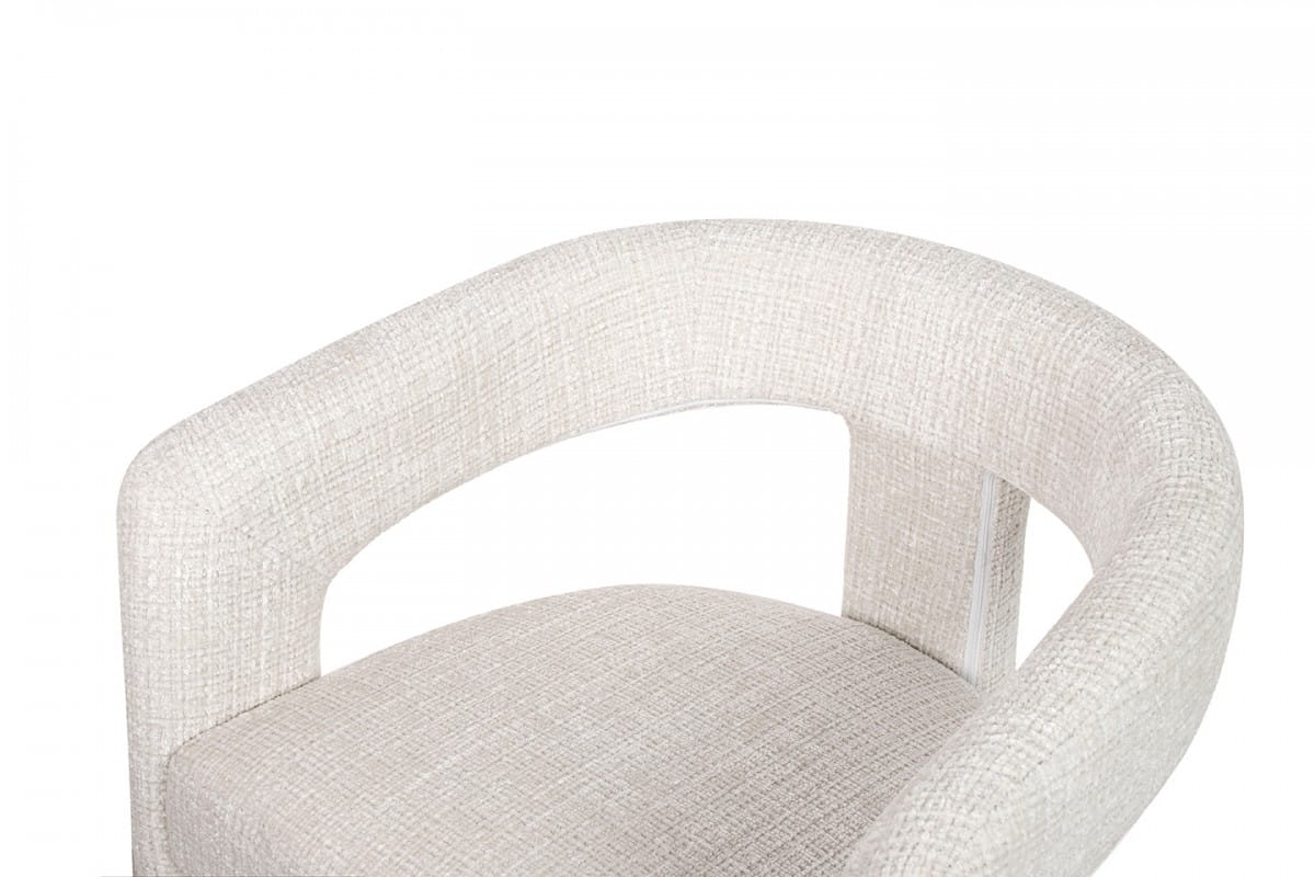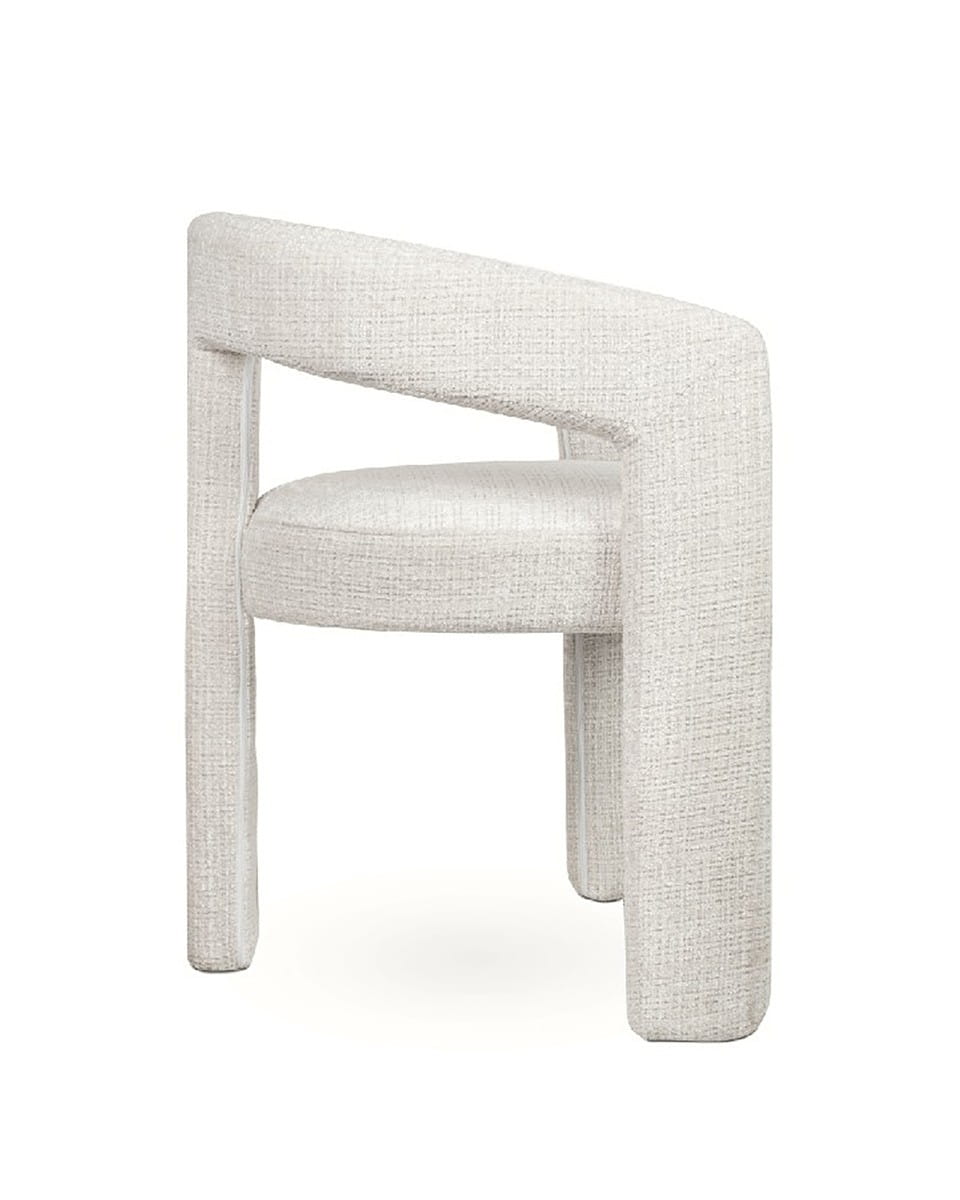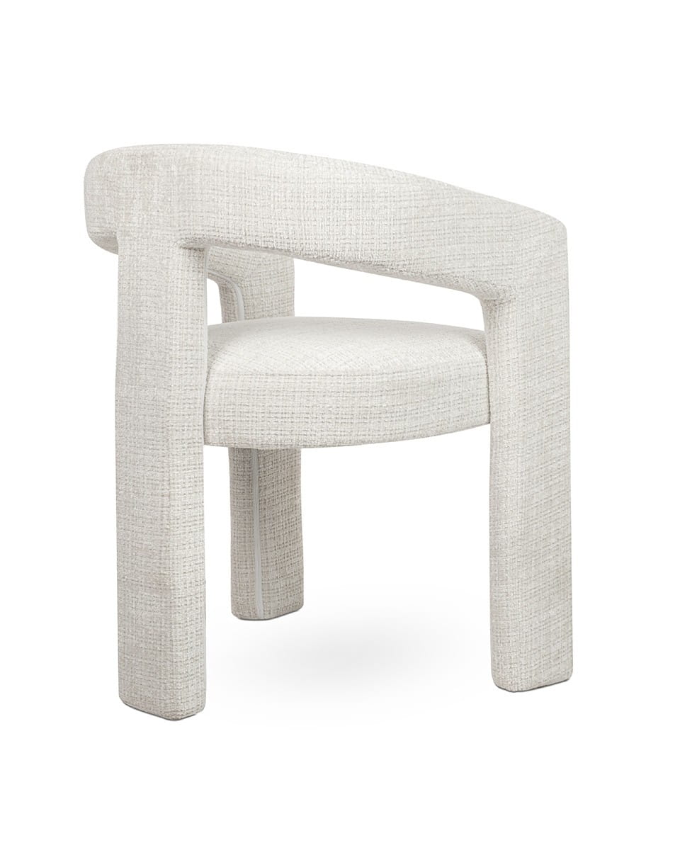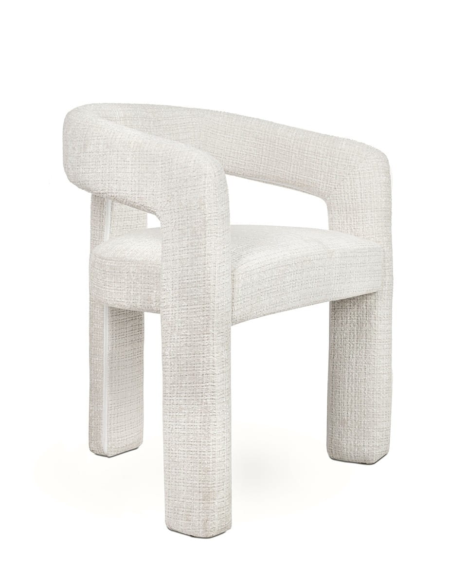 Tkanina Davis Cremona 1 w czystym, białym odcieniu dodaje elegancji i subtelności, a jej delikatna struktura podkreśla niebanalną formę krzesła, wprowadzając przy tym atmosferę świeżości i lekkości.