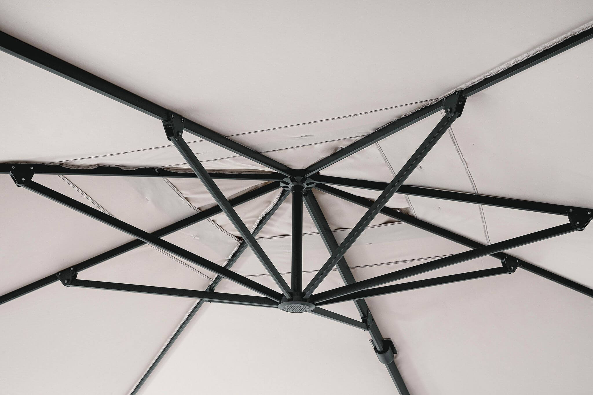 Jasny, obszerny parasol do ogrodu, który zapewni ochronę przed nadmiernymi promieniami słońca w letnie dni. Parasol Aries to praktyczne rozwiązanie, a zarazem stylowy dodatek do nowoczesnej aranżacji tarasu.